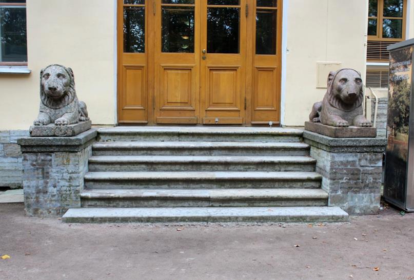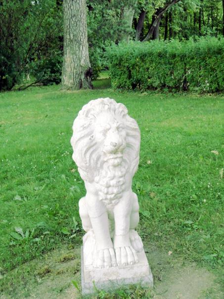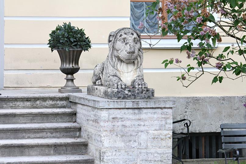 Возле крыльца нас встретили каменные львы. То ли время, покрывшее, словно патиной, тёмными пятнами гранит, придало им невесёлое выражение, то ли жизнь у них и впрямь была нелёгкой, но львы были очень грустные.
