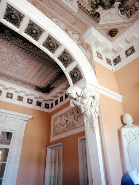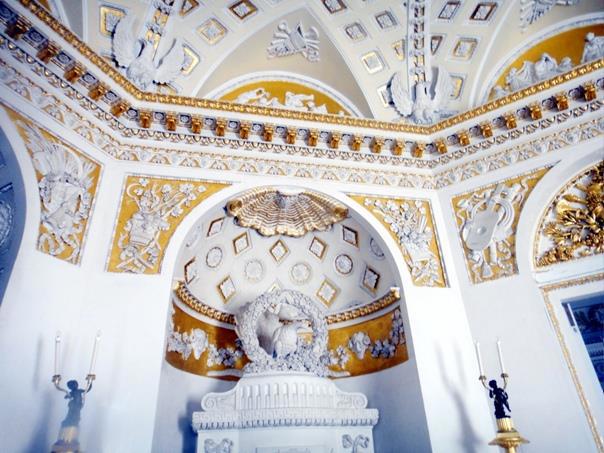 Дворец, как было принято в те времена, делился на две части: парадную, в которой принимали гостей, и жилую. Парадная начинается с небольшого прямоугольного помещения под названием “Египетский вестибюль”.