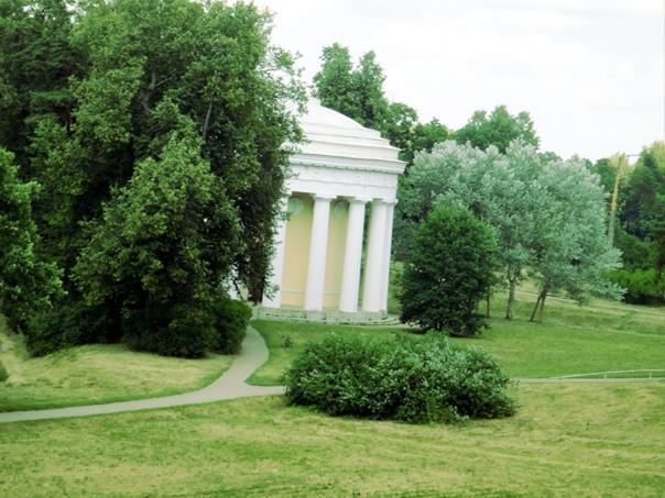 Более-менее внятного рассказа удостоился лишь павильон “Храм Дружбы”. Предназначался он для устройства обедов на природе и небольших концертов. Был посвящён Екатерине II и построен ей в подарок.
