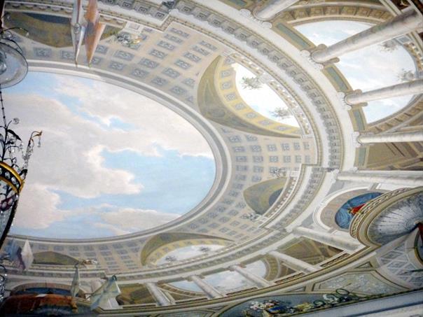 Обратите внимание на потолок. Кажется, что он высокий, сводчатый, но это не так — купол искусно нарисован на плоской поверхности.
