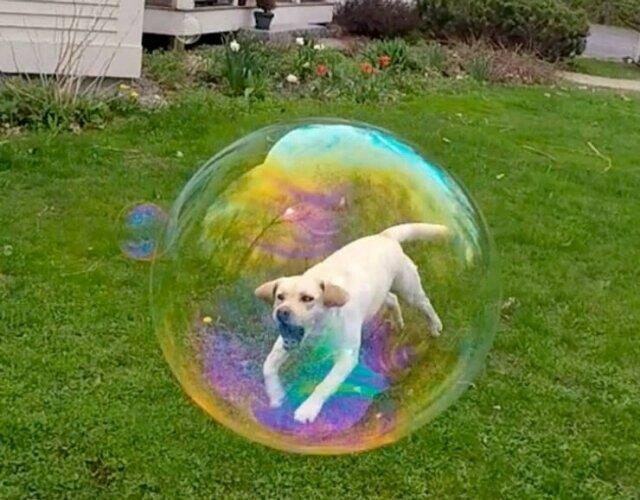 Собакен весь в мыле. Точнее мыльном пузыре. LOL.