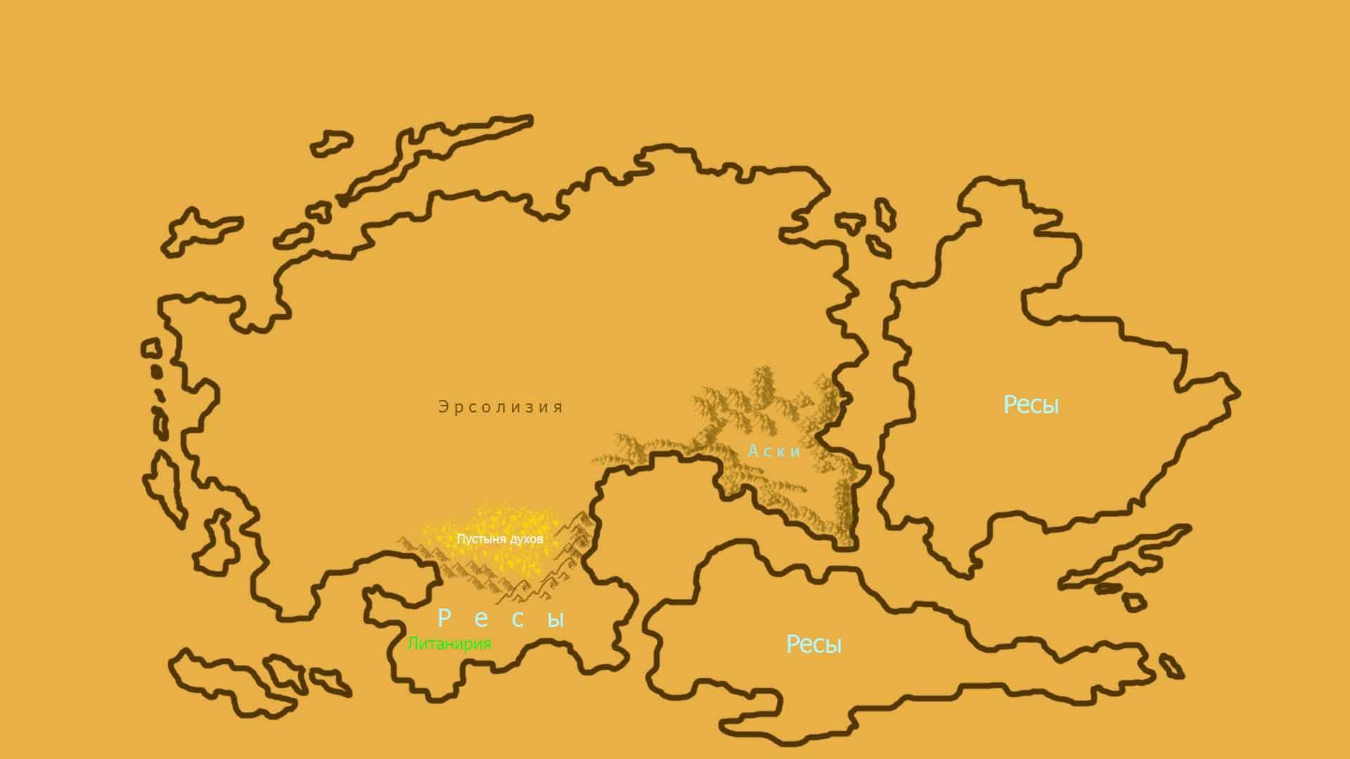 Пока нарисовано мало. Расположение гор мне местами не нравится, но это поправимо. Потом похвалюсь результатом, хотя карту придётся ещё много чем дополнять, когда дойду до продолжения истории о студенте-попаданце.