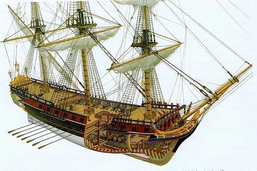 В морской артиллерии попаданцу прогрессивнее ставить пушки не в борт (как на картинке), а в башни, как на броненосцах и линкорах. Это позволит вести огонь на 360 градусов. Что особо удачно, если использовать маневренное парусно-гребные судно. Можно всеми орудиями (даже если оно будет одно) отступая вести огонь или преследуя и вообще заходить противнику в нос или корму. Хватит вообще одной башни с одним орудием, но с пушкой скорострельной, нарезной со всеми возможными новшествами, высверленным стволом, барабаном или сменными каморами, оптическим прицелом. Плюсом обязательно канонир гений, который рождается один раз за столетие, автор с таким всегда поможет ГГ. На все пушки такого не найти, но на одну то можно особенно, если она такая. И понятно в бою вначале уничтожать руль, заходить со стороны, где у врага меньше орудий и бить ниже ватерлинии. И тогда будет понятно от чего ГГ всегда побеждает, аналог чудо меча или уникальной магии.