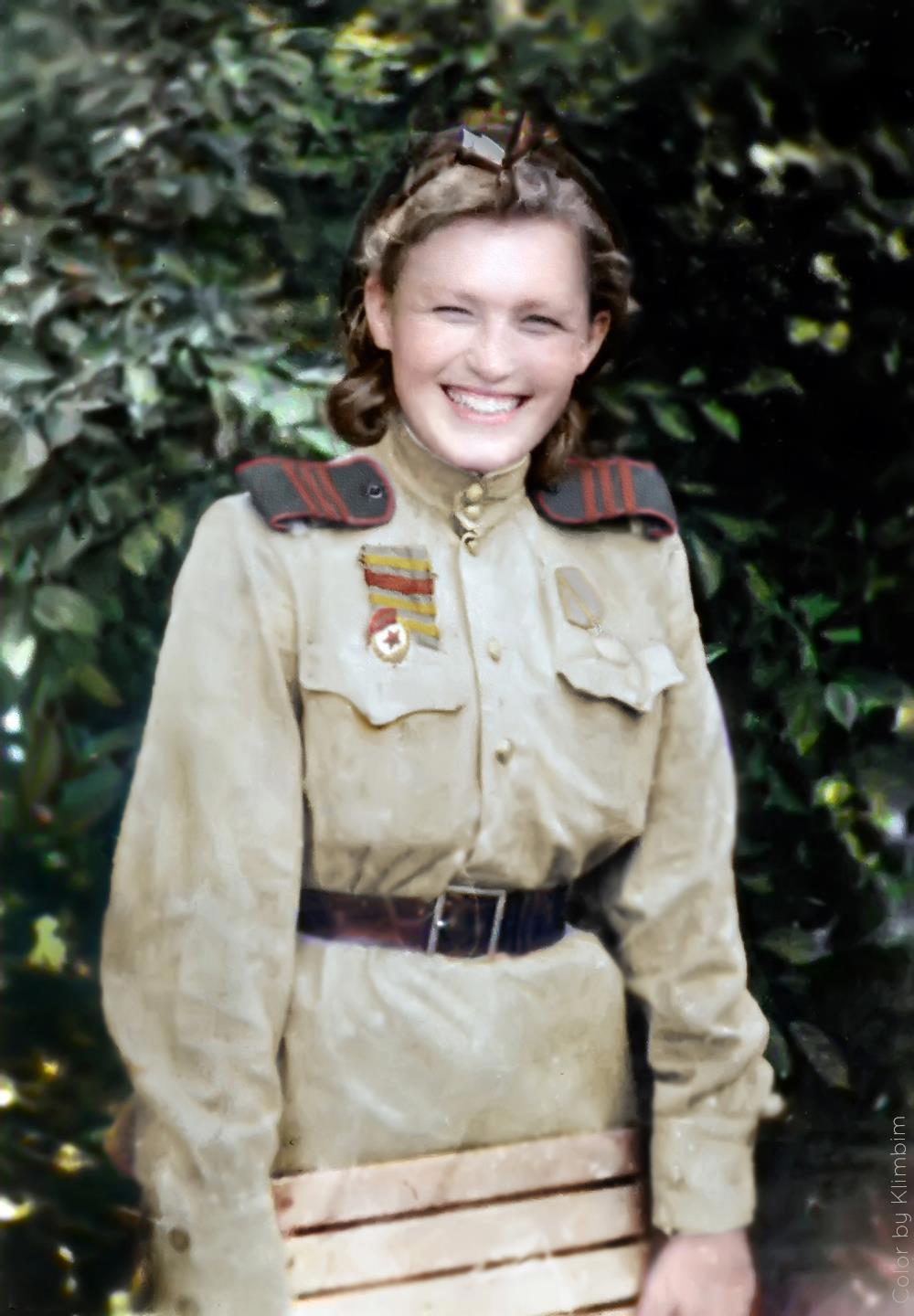 Трудно поверить, что у этой красавицы, с доброй, открытой, восхитительной улыбкой, три тяжёлых и одно лёгкое ранение. гв. сержант Малыгина Надежда Петровна, санитарка, 62-я танковая бригада.