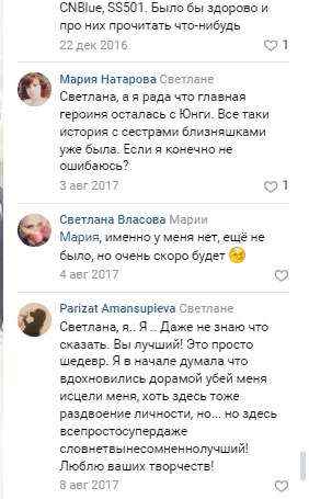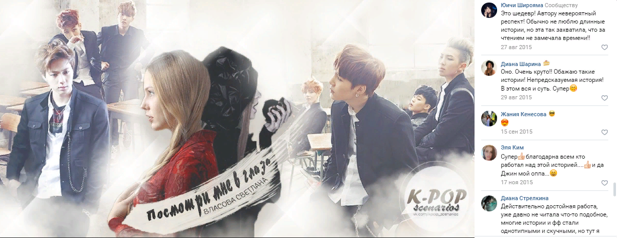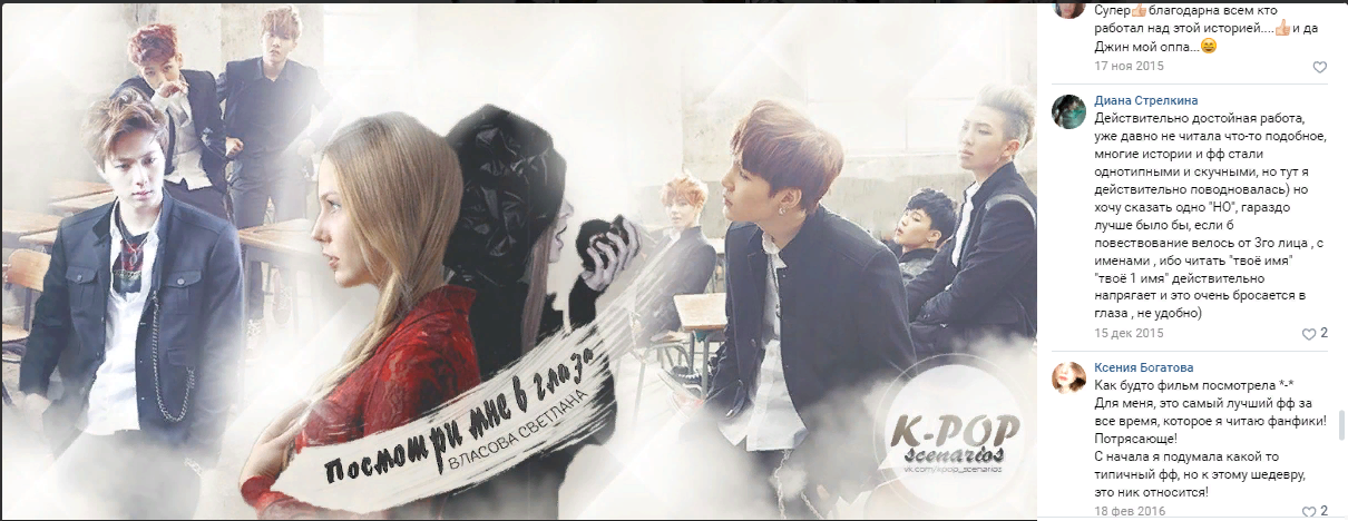 Изначально, как вы могли уже догадаться, роман был фанфиком, и главными лицами были ныне уже ОЧЕНЬ популярные, мировые звёзды BTS, но на тот момент они только дебютировали и я была (и есть) ARMY, но прошу вас, не делайте выводы по этой информации, роман переписан, много что ушло, много что добавилось, и конечно парней из кей-поп группы нет, и место действия не Корея, а Америка) Вот несколько отзывов уже о новой интерпретации.