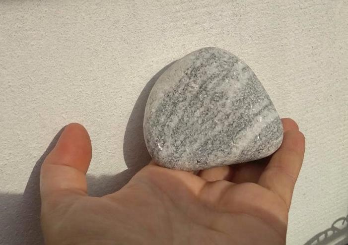 Ну, вот казалось бы, что в нём такого? Обычный окатыш из серого мрамора. НО! У него была такая красивая полосатость, он так сахарно искрился на солнце и так уютно и почти по-пролетарски лёг в ладонь... Что я не устояла.