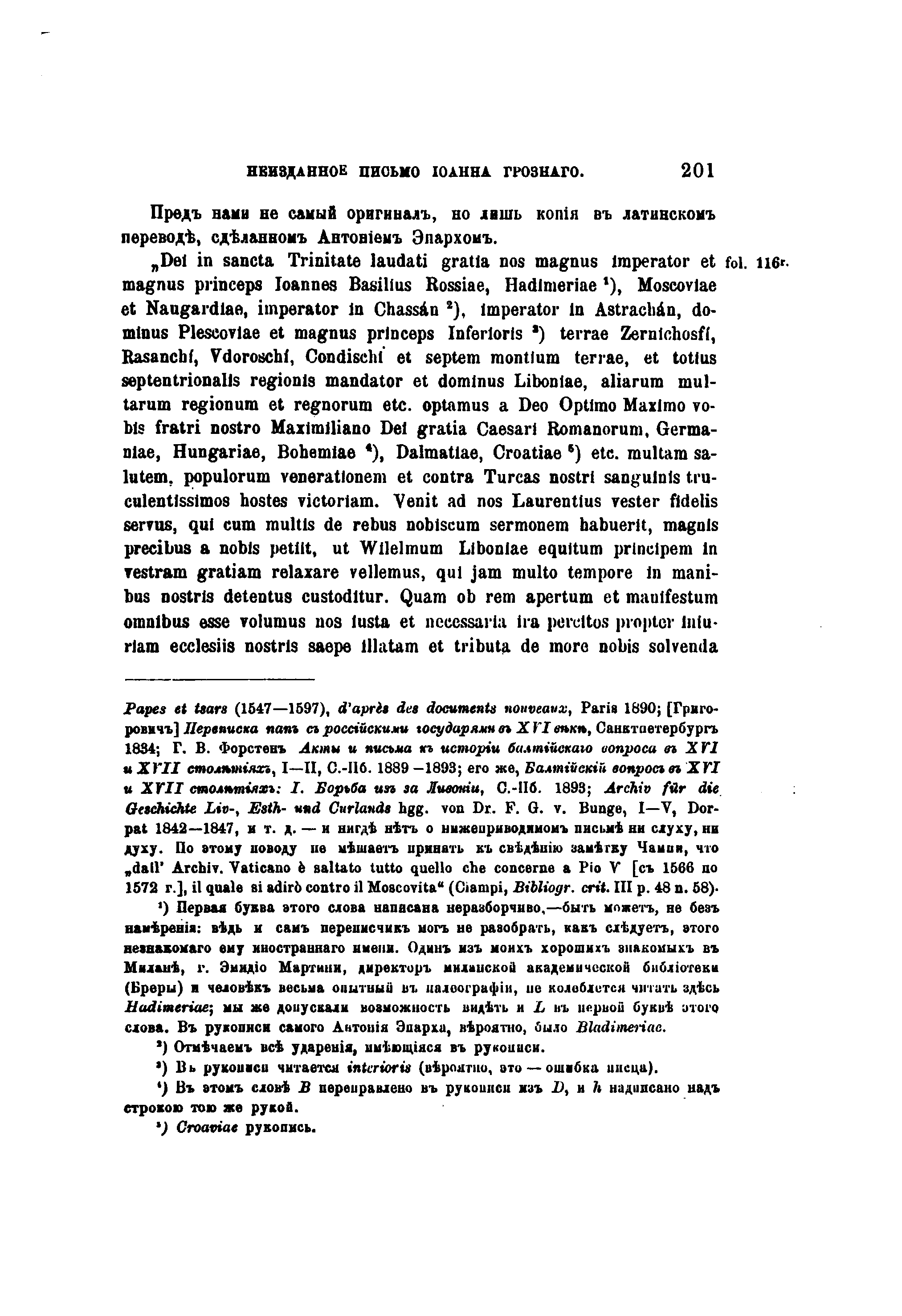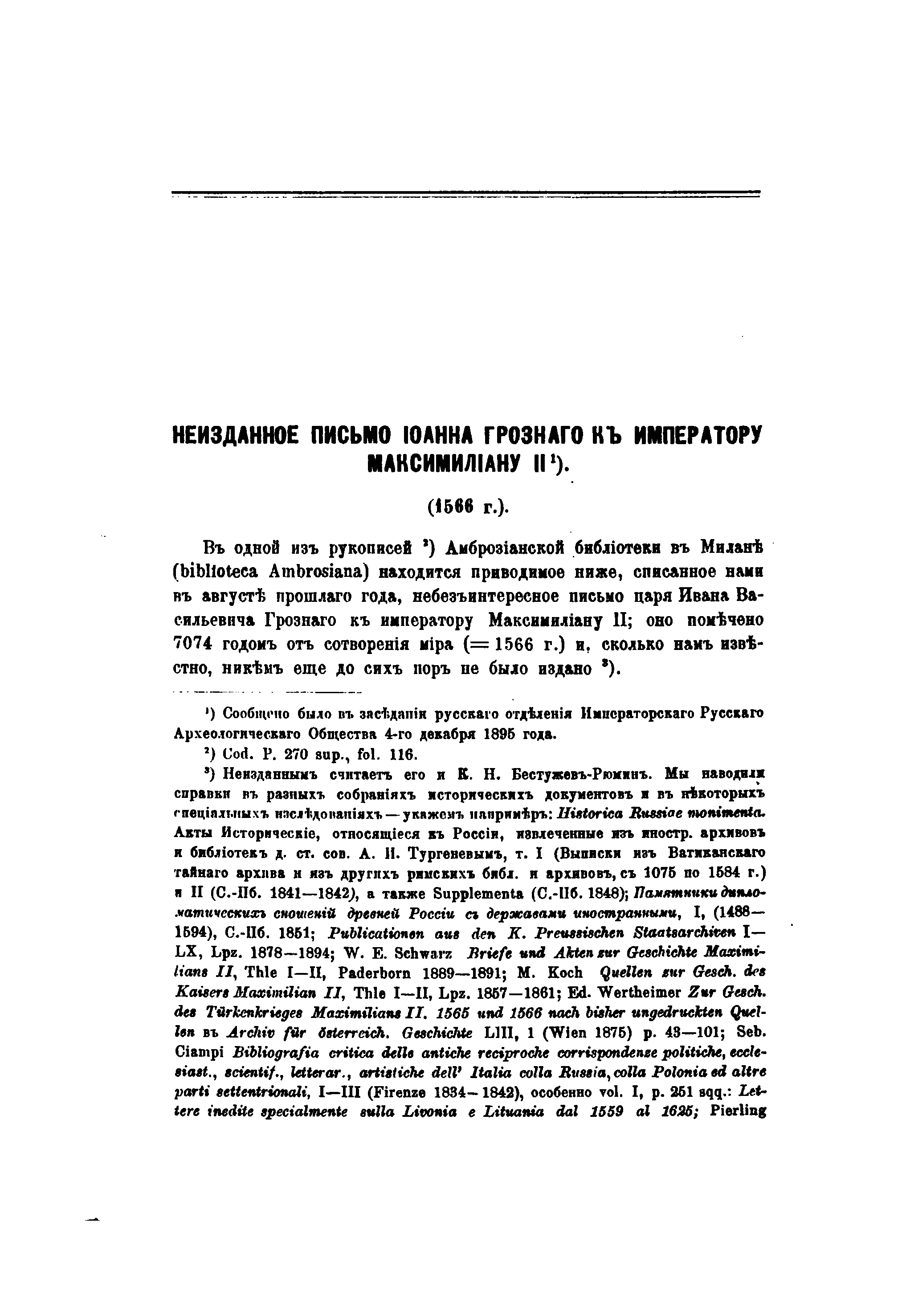 1566 год. Письмо Иоанна Грозного Максимилиану II.