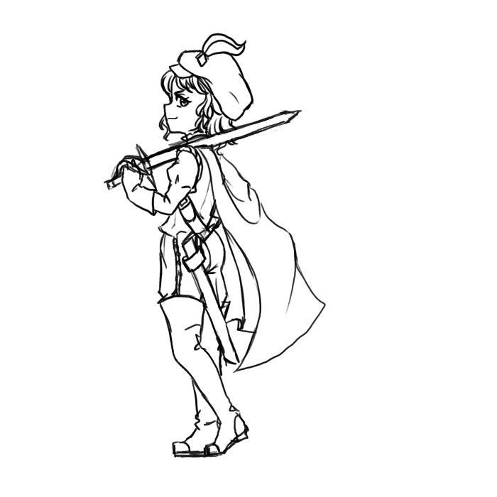 Конечно, я не мог остаться в стороне! Так как всех своих персонажей я люблю примерно одинаково, то я просто показал Галине несколько портретов своих героинь, и доверил выбор ей. Жребий пал на леди Эмилию, телохранителя герцогини Эльвартской. Воистину, ну кто устоит перед этим кудрявым сгустком обаяния? ^_^ Прошу полюбоваться - рабочий эскиз, на основе которого вскоре будет создан стенд (величиной примерно с ладонь).