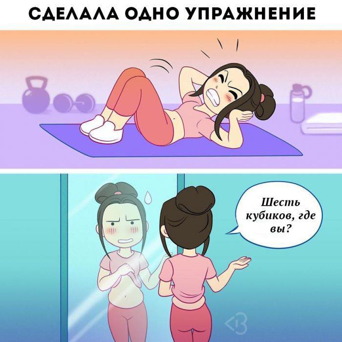 И начинается бешеный поиск упражнений в интернете, (в тренажёрный зал нам ходить некогда, да и ни к чему, мы же так, слегка фигурку подтянуть).