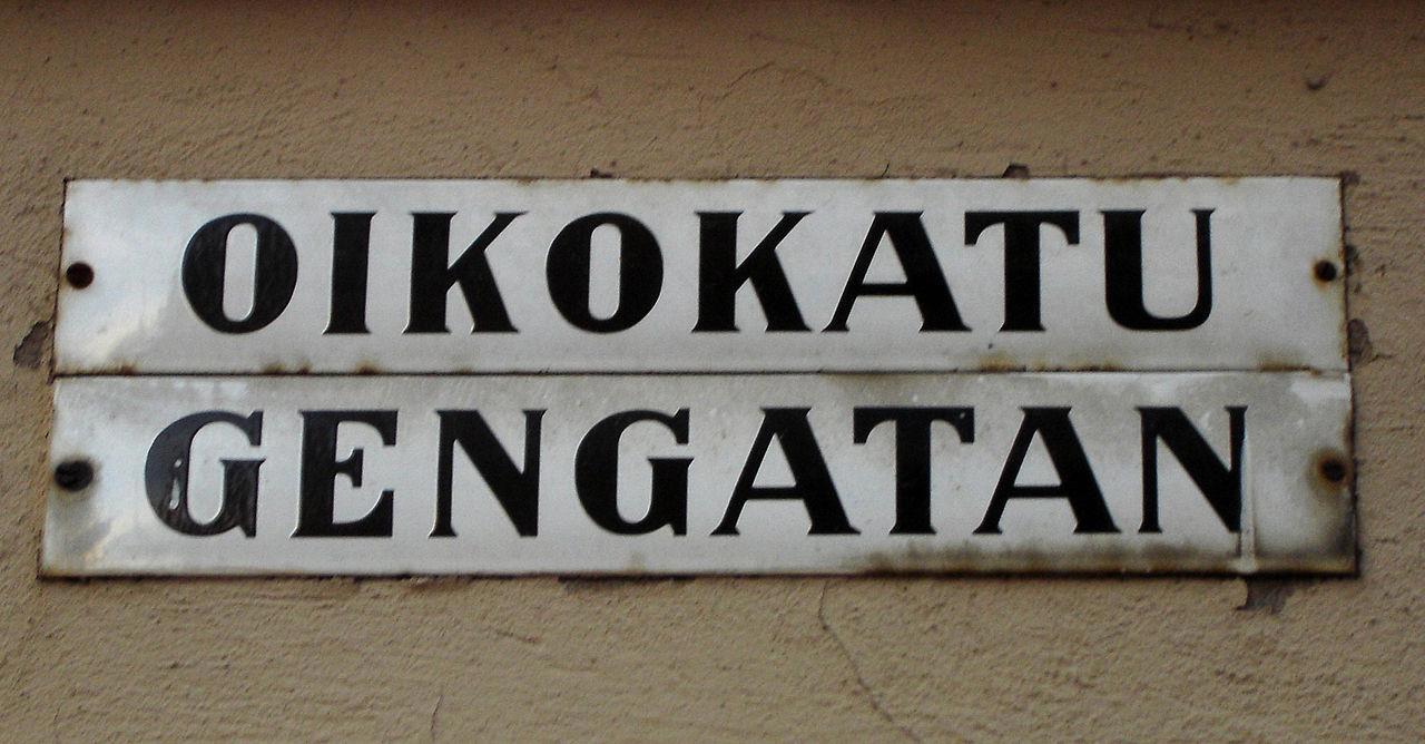 Дорожный знак и табличка на двух языках