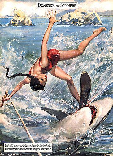 Мой любимый рисунок - девушка на водных лыжах наезжает на акулу, которая ей не уступила лыжню.