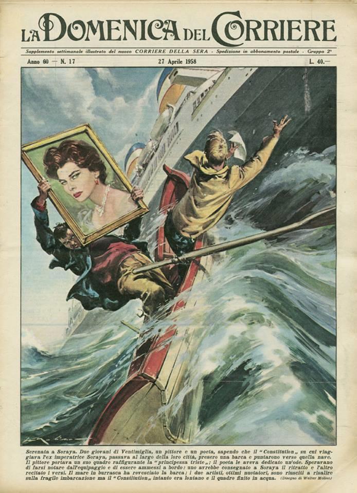 Два придурка, отправившиеся на лодке поприветствовать знатную персону - как понял - принцессу и опрокинутые волной от лайнера (АМаркорд что-то вспомнился)))