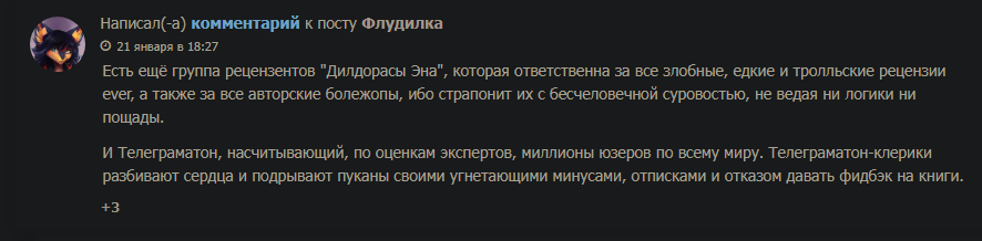 Однако настоящий флудильщик не пользуется этим функционалом, а просто вбивает её адрес в браузере: https://author.today/post/11669