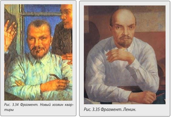 Во главе стола новый хозяин квартиры. Интересная фигура. В 1934 художник писал портрет Ленина. Сравните.