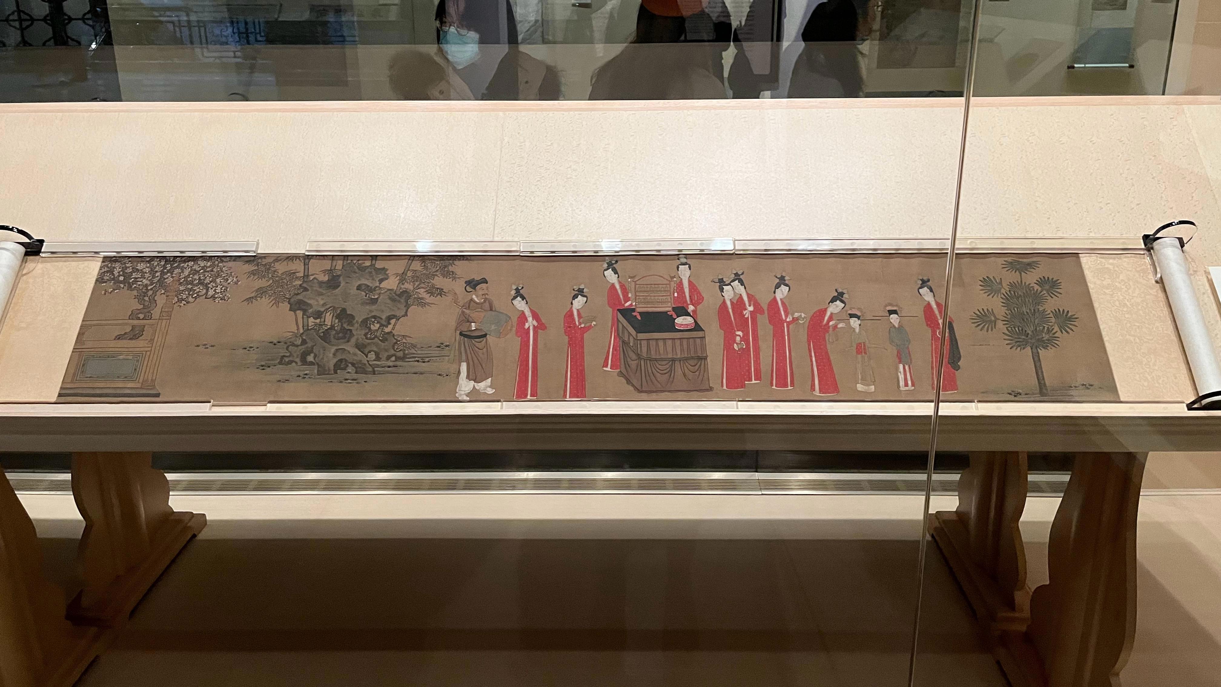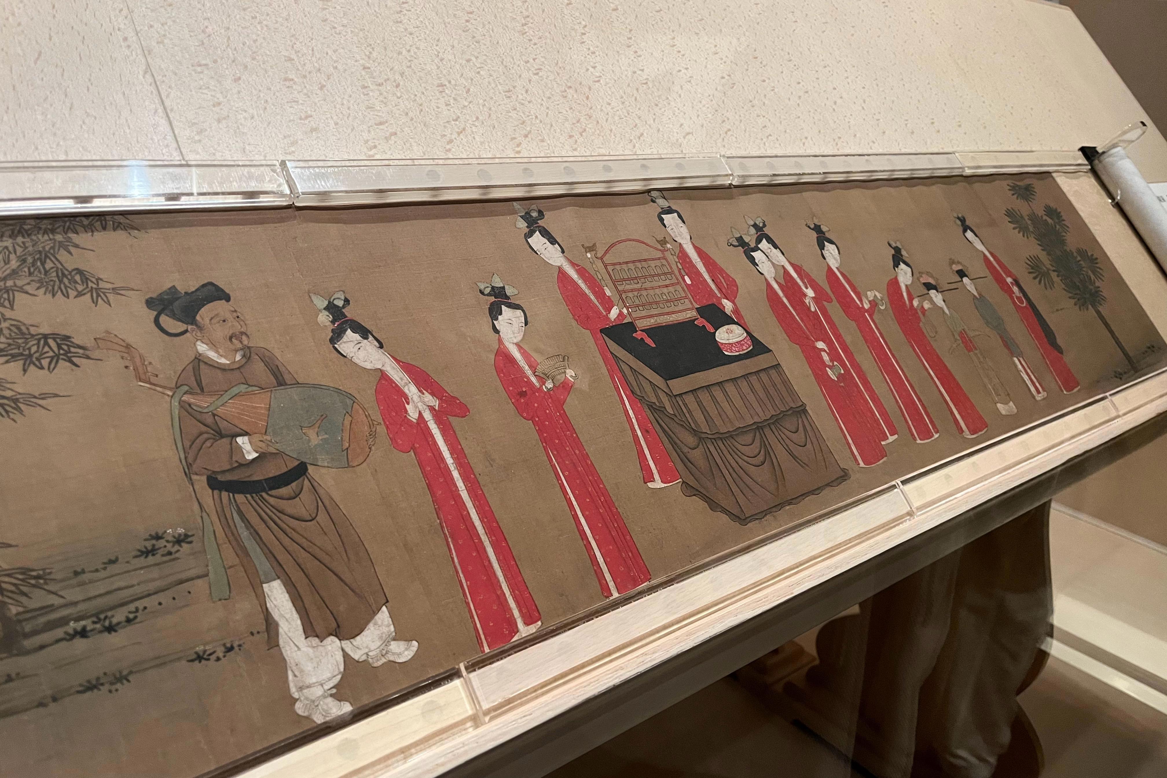 歌樂圖卷 ("Дамы, исполняющие музыку, свиток изображением") (тушь и краски на шелке, длина картины 158 см, Шаньхайский музей)