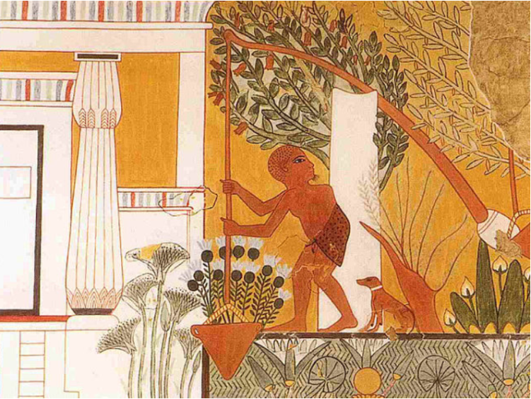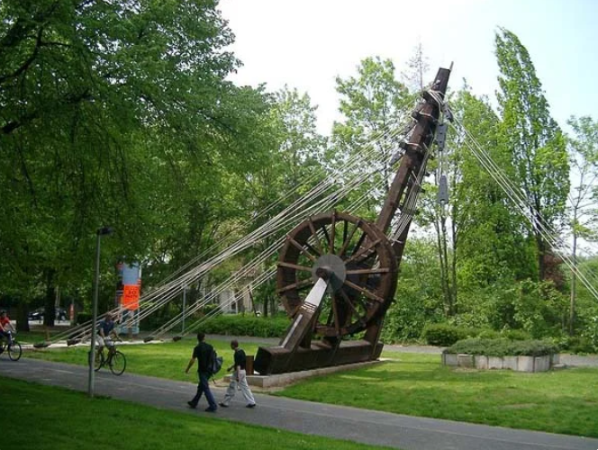 Автор: Д. В. АмурскийПростейшее подъёмное устройство изобрели в Междуречье уже пять тысяч лет назад. Чаще всего этот механизм, шадуф, применялся для орошения земель, но мог использоваться и для поднятия тяжестей. Вскоре это техническое усовершенствование позаимствовали в Древнем Египте. Типичный шадуф представляет собой ёмкость для воды на длинном шесте, закрепленном на подставке, с противовесом на другом конце.