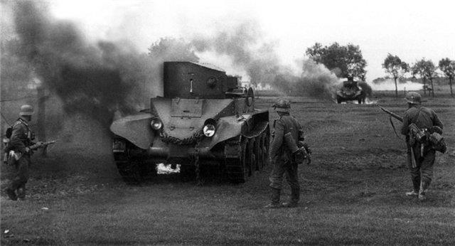 Горят пулеметные БТ-2 (На таком воевал экипаж старшины Махрова из "Нахального минирования")