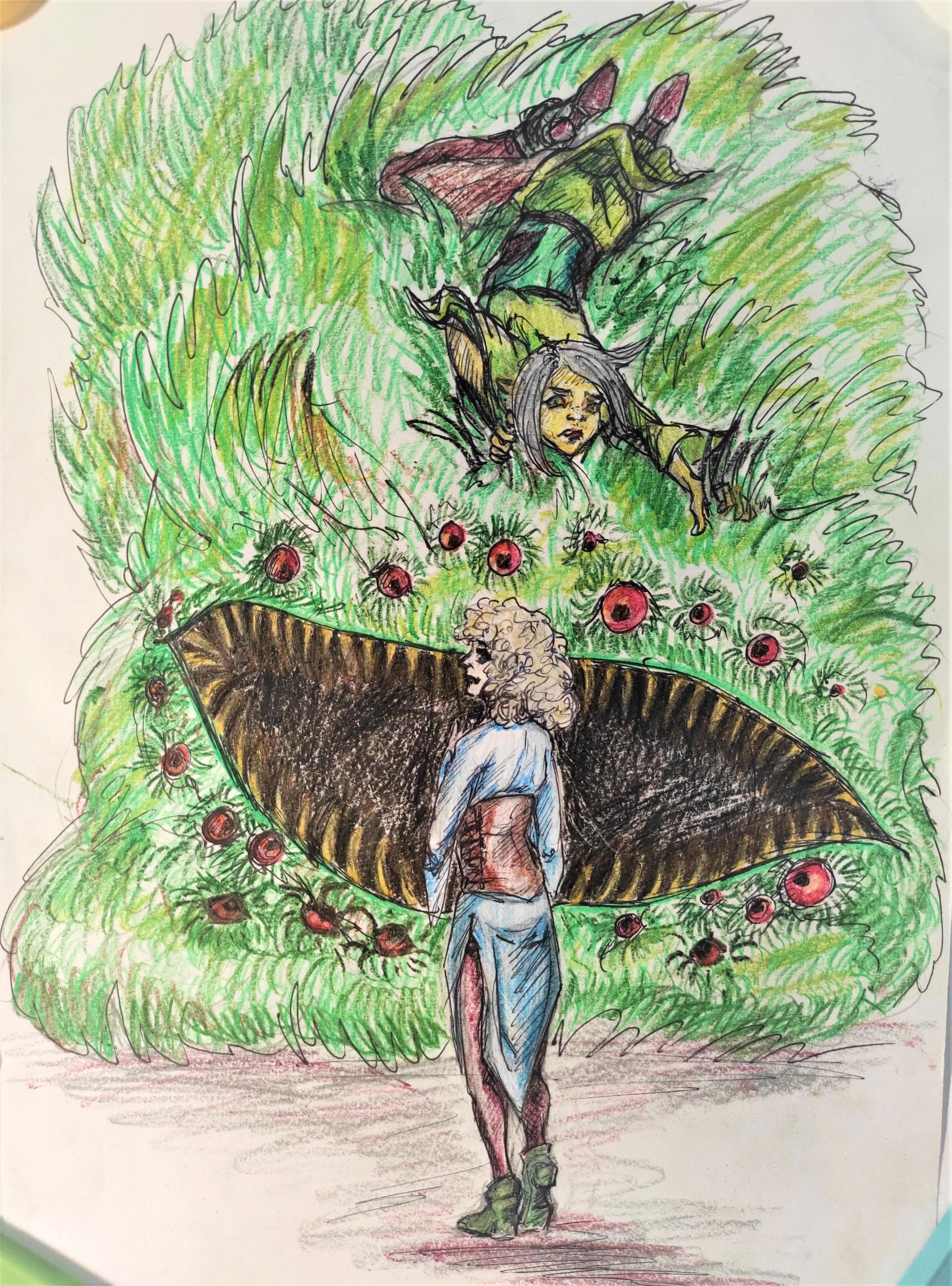 Лесная девочка взвилась под потолок и закружила по залу что-то недовольно выкрикивая на певучем наречии лесных людей.