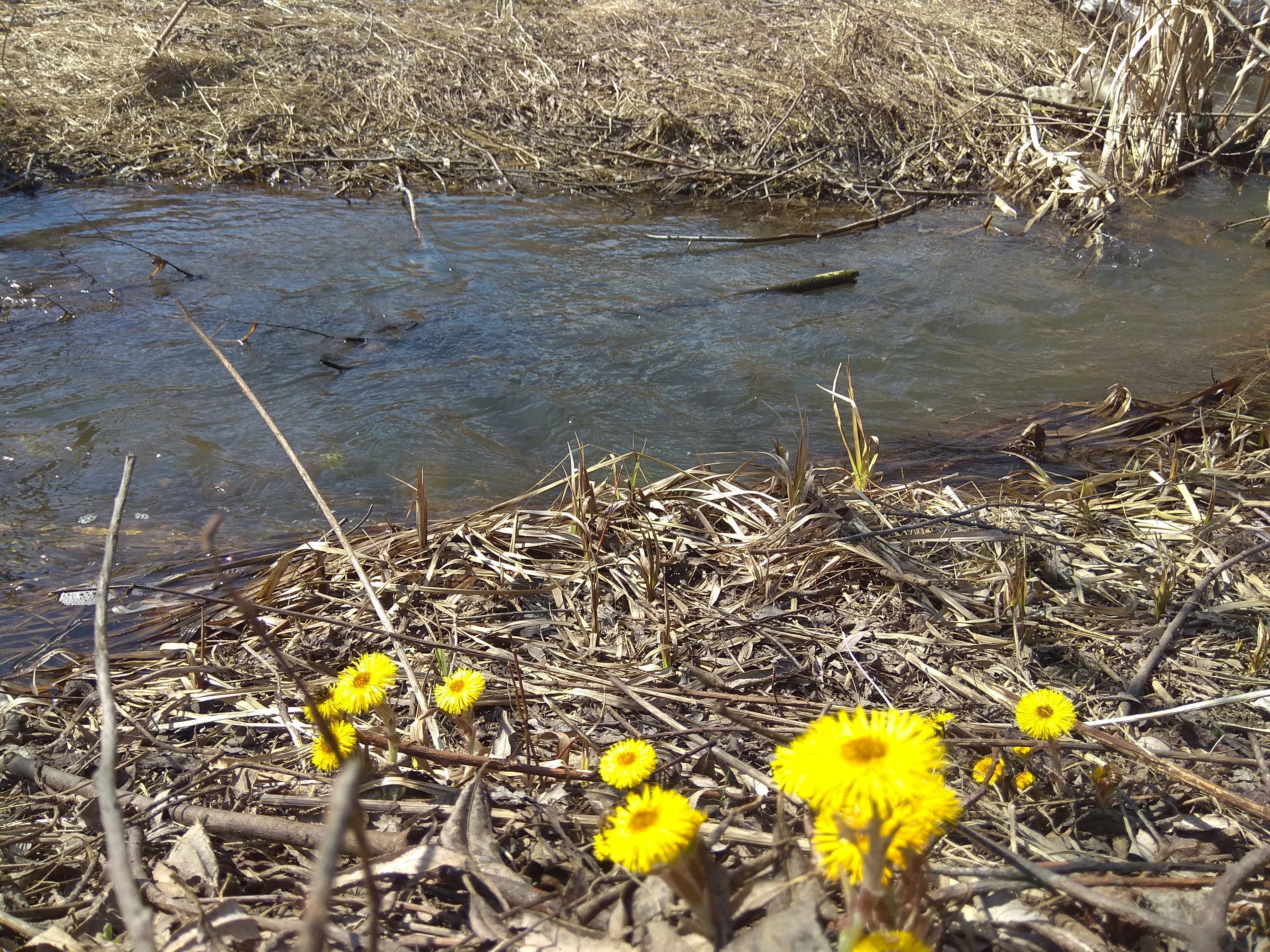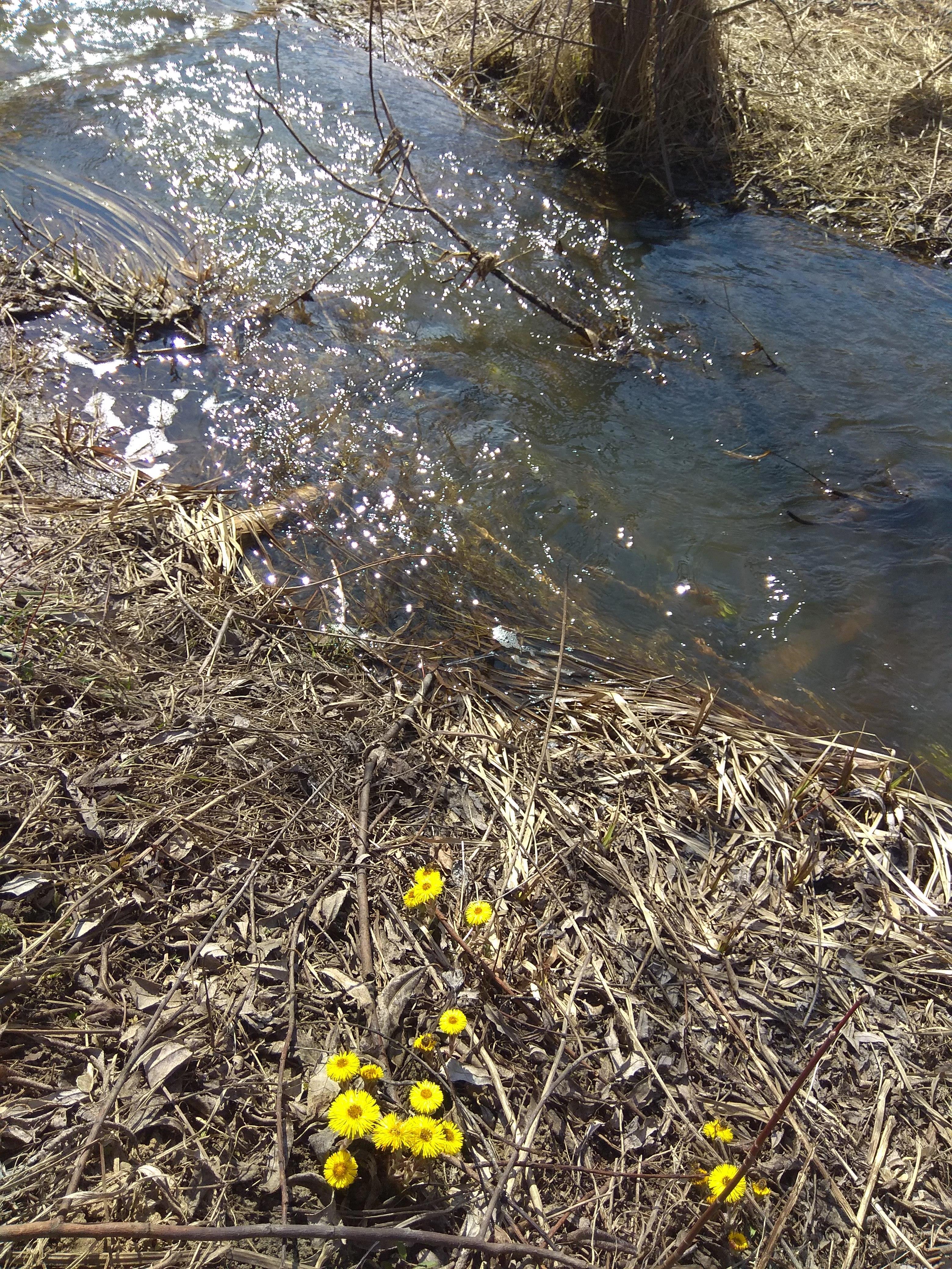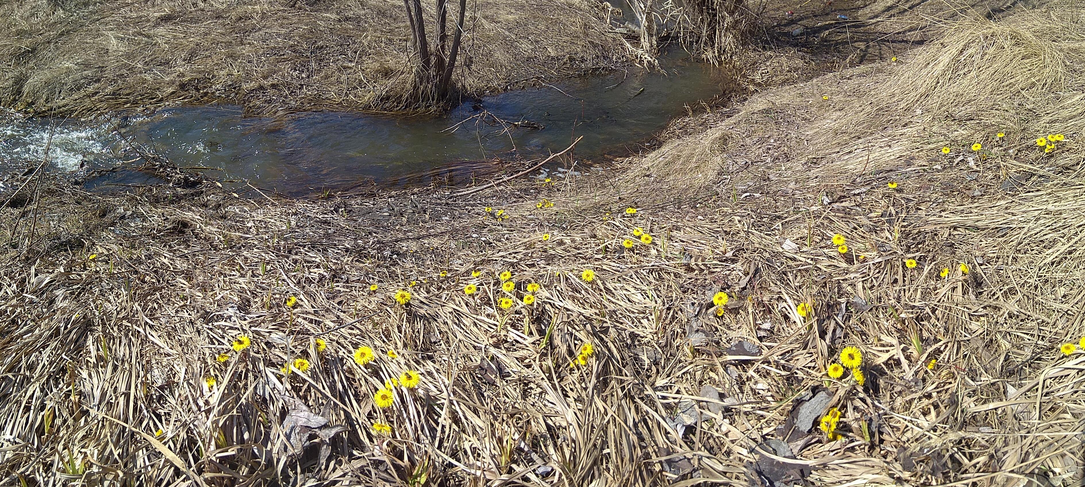 Снег у нас сошел еще не весь. Зато, спустившись в низину к ручьям, я аж захлебнулась от увиденного! Летают бабочки и пчелы, и уже показались первые цветы мать-и-мачехи. А весной пахнет! Ммм...
