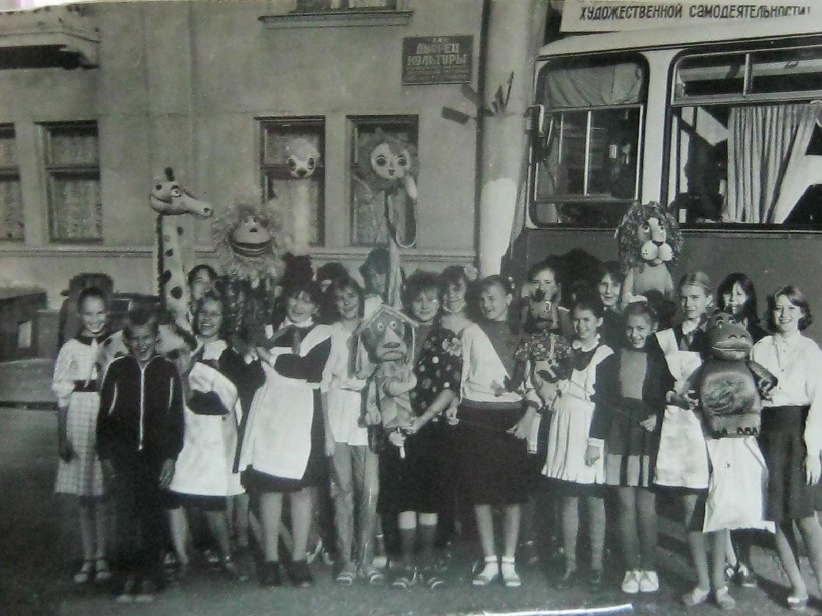 "Икарус-256" привёз детей на какое-то мероприятие в Дом Культуры ВГТЗ (Тракторного завода), восьмидесятые годы: