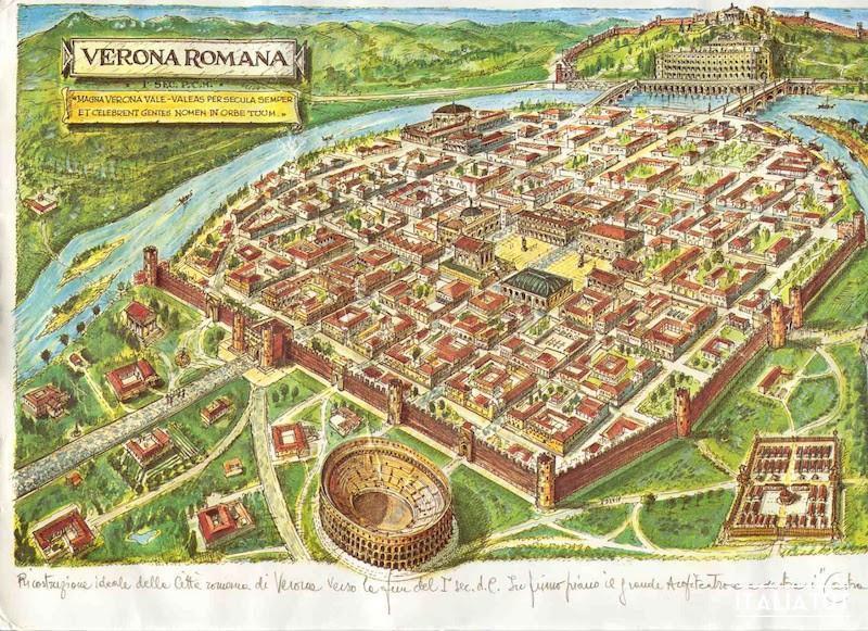 Будучи процветающим городом, Верона была обнесена крепостными стенами, имела термы, храмы, театр и амфитеатр. Два последних сооружения хорошо сохранились и до сих пор используются по своему прямому назначению. А Arena di Verona и вовсе является гордостью города, привлекая сотни тысяч зрителей на масштабные оперные постановки и концерты, которые проходят в летние месяцы. В древнеримские времена на этой арене могли разместиться до 30 000 зрителей.
