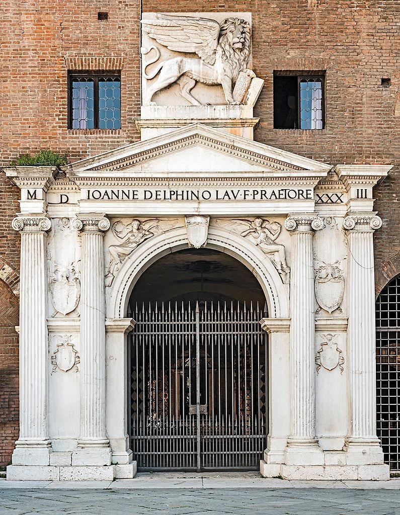 Ещё один крылатый лев украшает фасад Palazzo del Podestà.