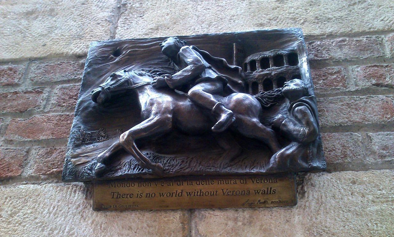 Мемориальная доска на стене так называемого Дома Ромео в Вероне.