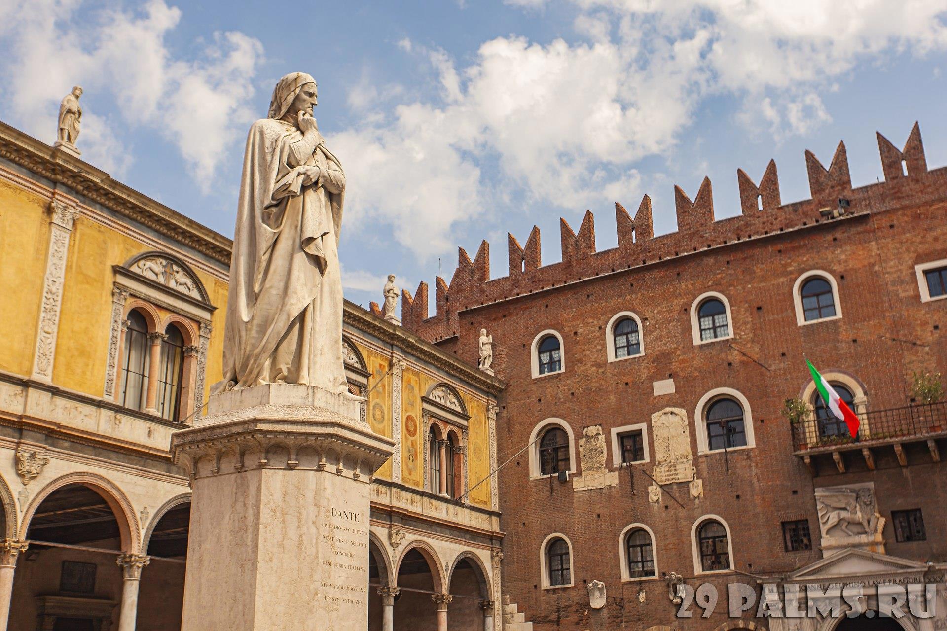 Памятник Данте в Вероне на площади Синьории.