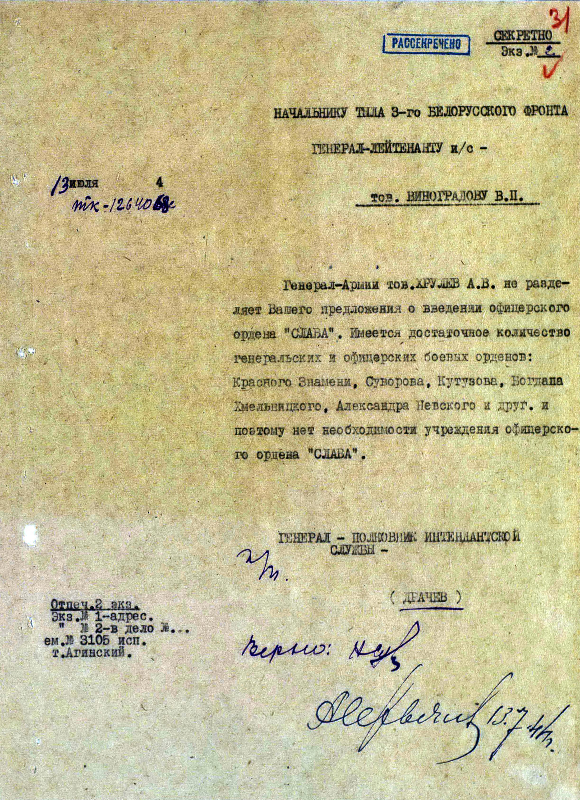 Не знаю как считаете Вы, уважаемые читатели, но мне искренне жаль, что на это обоснованное, разумное предложение, позволившее бы сразу же и вернуть орден Святого Георгия в перечень наград СССР, был получен вот такой ответ: