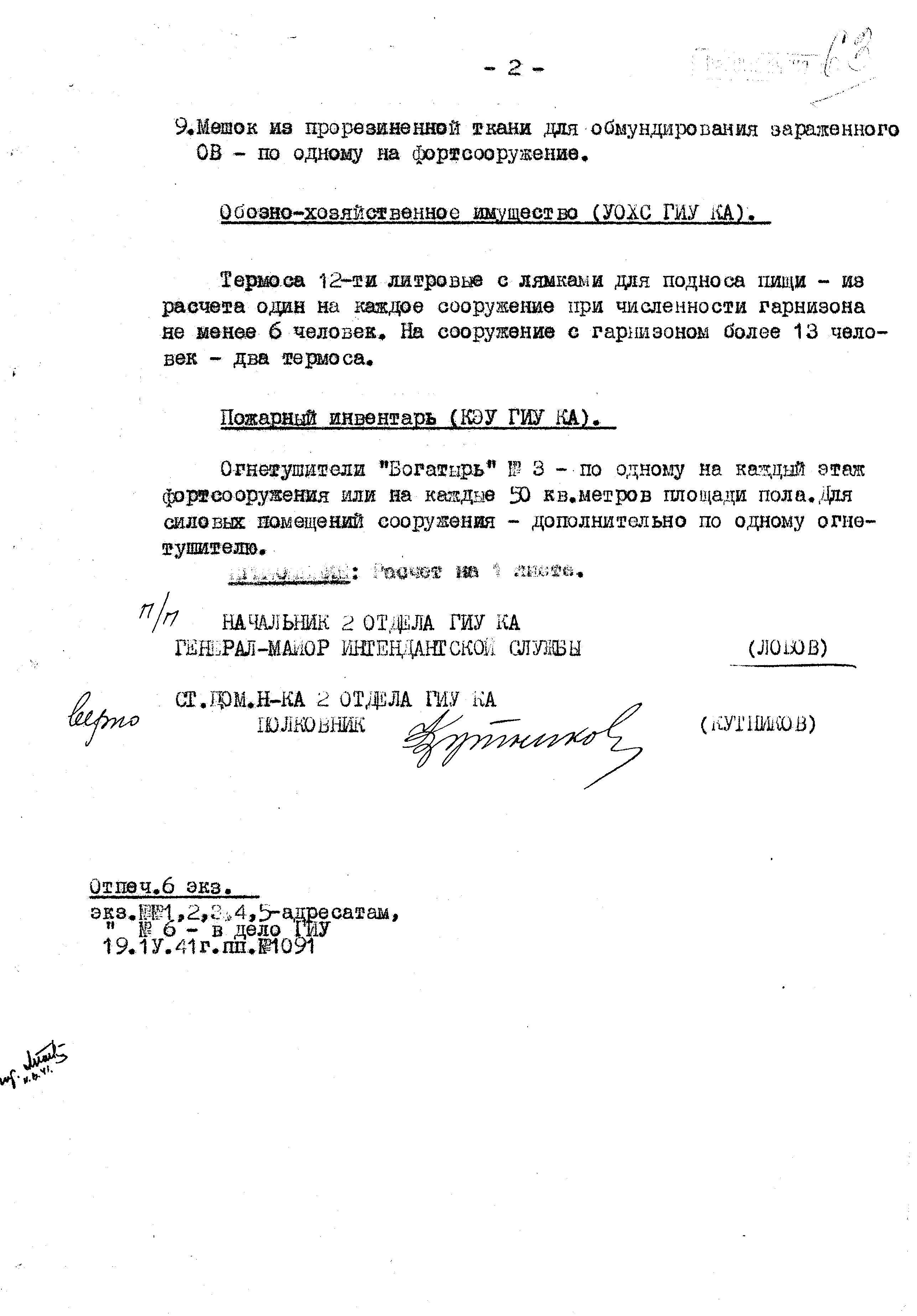 Потому, вроде, и не столь важно стопроцентное обеспечение этих воинских частей запасами вещевого имущества. Бойцы в ДОТах и ДЗОТах постоянно не находятся, занимают их только на время учений или с началом боевых действий, запасы хранятся в близлежащих военных городках, а сами люди проживают в казармах. Но, есть приказ Наркома, есть утверждённые нормы, значит УРы, как и любые другие воинские части, должны быть обеспечены всем положенным.