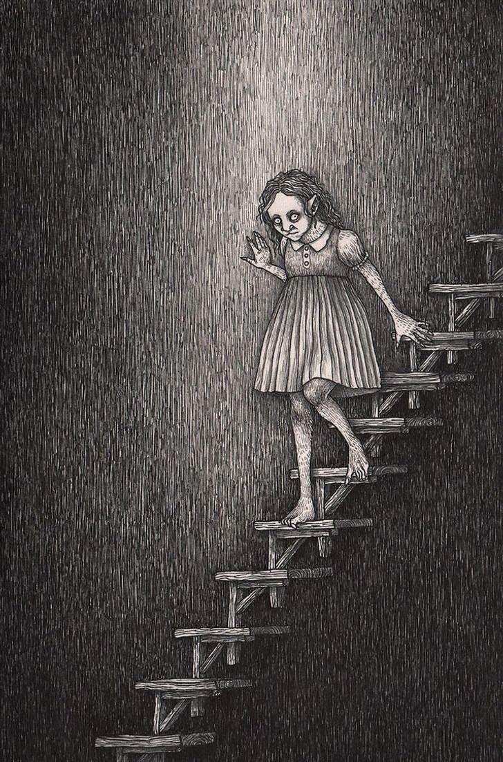 Здесь собрались все ваши потаённые кошмары, все виденные в детстве, но забытые (или нет?) нынче монстры. За каждой картинкой я вижу историю, Мортенсен свои жуткие сказки вплетает в повседневность, как ленту. Оглянитесь, никто не стоит за спиной? А может, это вы на одной из картинок, в любой из ролей?
