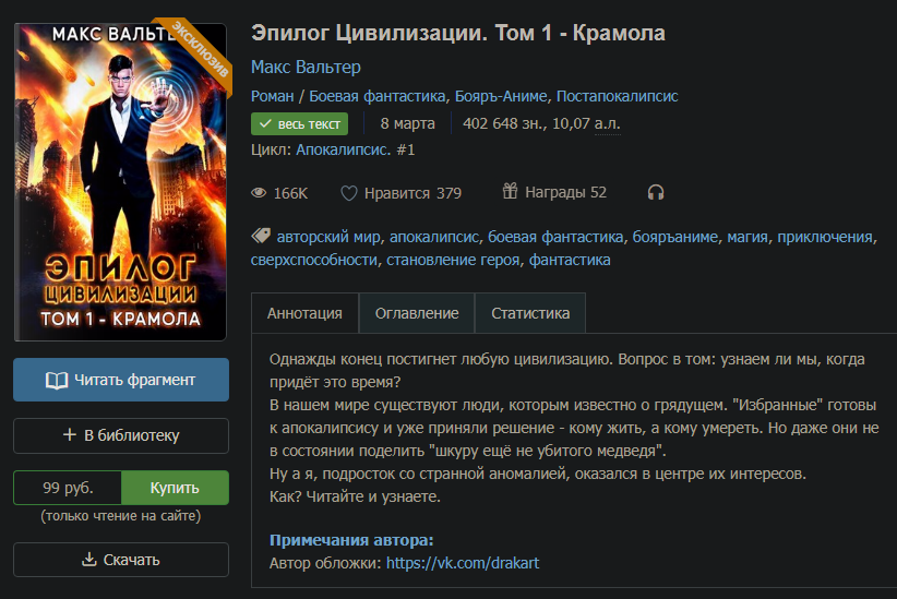 С лютой рожи на обложке я аж кирпич отложил непроизвольно. Теги тоже слегка прикололи, хотя постапокалипсис почему-то не завезли.