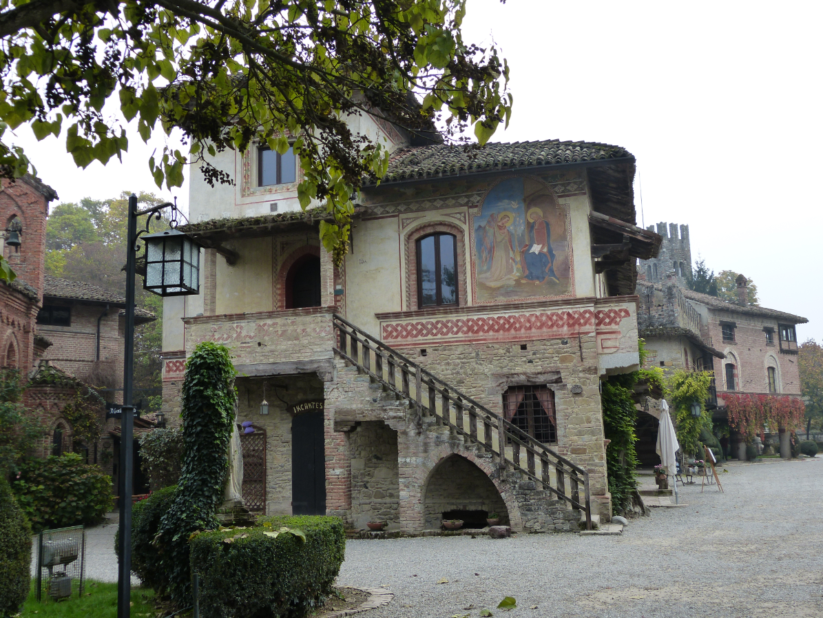 "Средневековая" деревушка выглядит просто очаровательно! Домики с черепичными крышами, преимущественно двухэтажные, группируются вокруг маленьких площадей с обелисками, статуями или фонтанами в центре. Какие-то здания увенчаны зубцами типа "ласточкин хвост". К некоторым домам пристроены высокие башни.