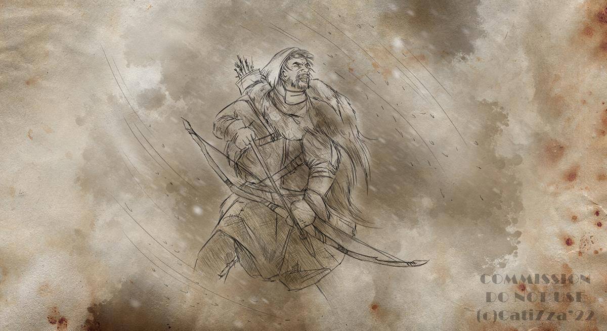 Монохромные скетчи выглядят так. Это недавно законченный заказ для клиентов из Канады. Детская анимационная студия делает фэнтези-мультфильм, и пролог к сюжету состоит из 8 кадров "из летописей", иллюстрирующих закадровый рассказ.