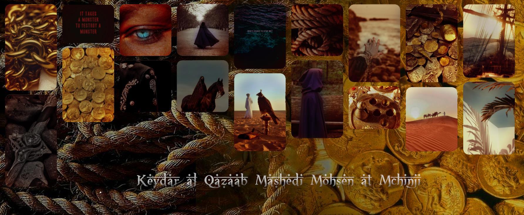 Кейдар любит фиолетовый цвет и золото. Не как способ обогащения, а как красивый металл. Ненавидит собирать волосы, потому что постоянно теряет ленты, которыми он их завязывает. Он искусно владеет мечом, удивительно хорош в обращении с плетью, а также обладает навыками врачевания. Он - один из самых сложных для понимания и приятия среди всех созданных мною персонажей. Его можно любить /хоть и с трудом/, можно ненавидеть, но не было еще никого, кого бы Кейдар Мохсен оставил равнодушным.