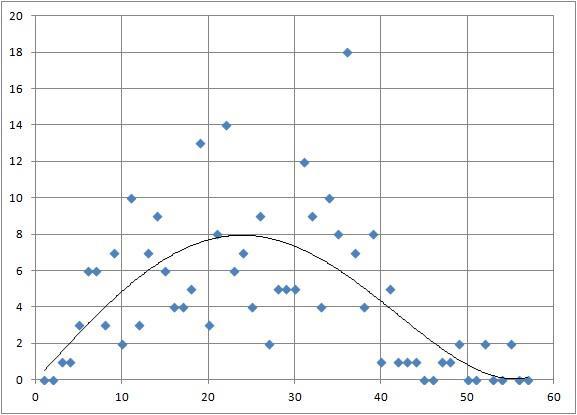 - Распределение длины в словах есть на картинке 1. Если присмотреться, то можно увидеть примерно нормальное распределение, но если добавить на график планки погрешности, то они до линии тренда даже не дотянутся.