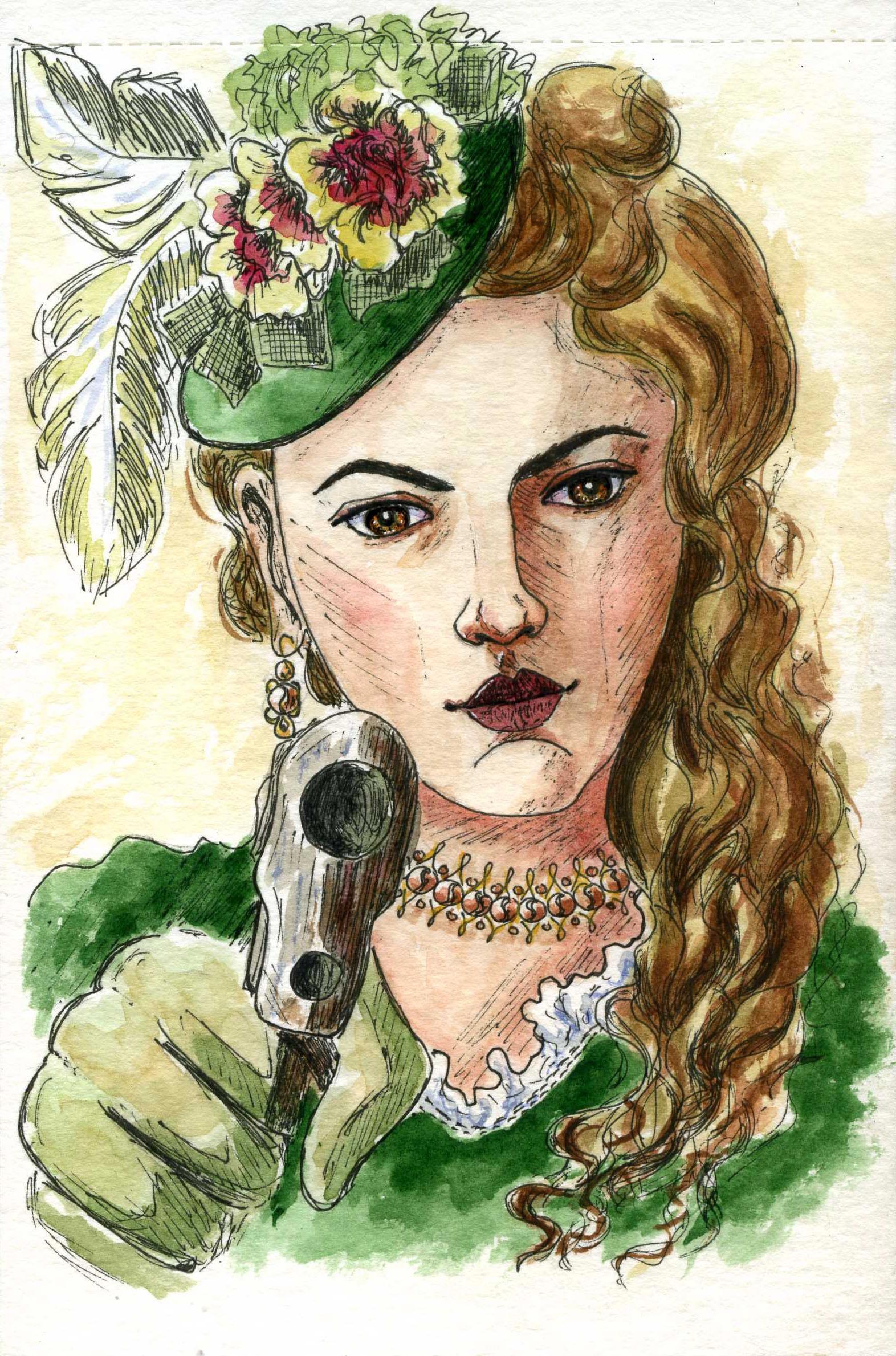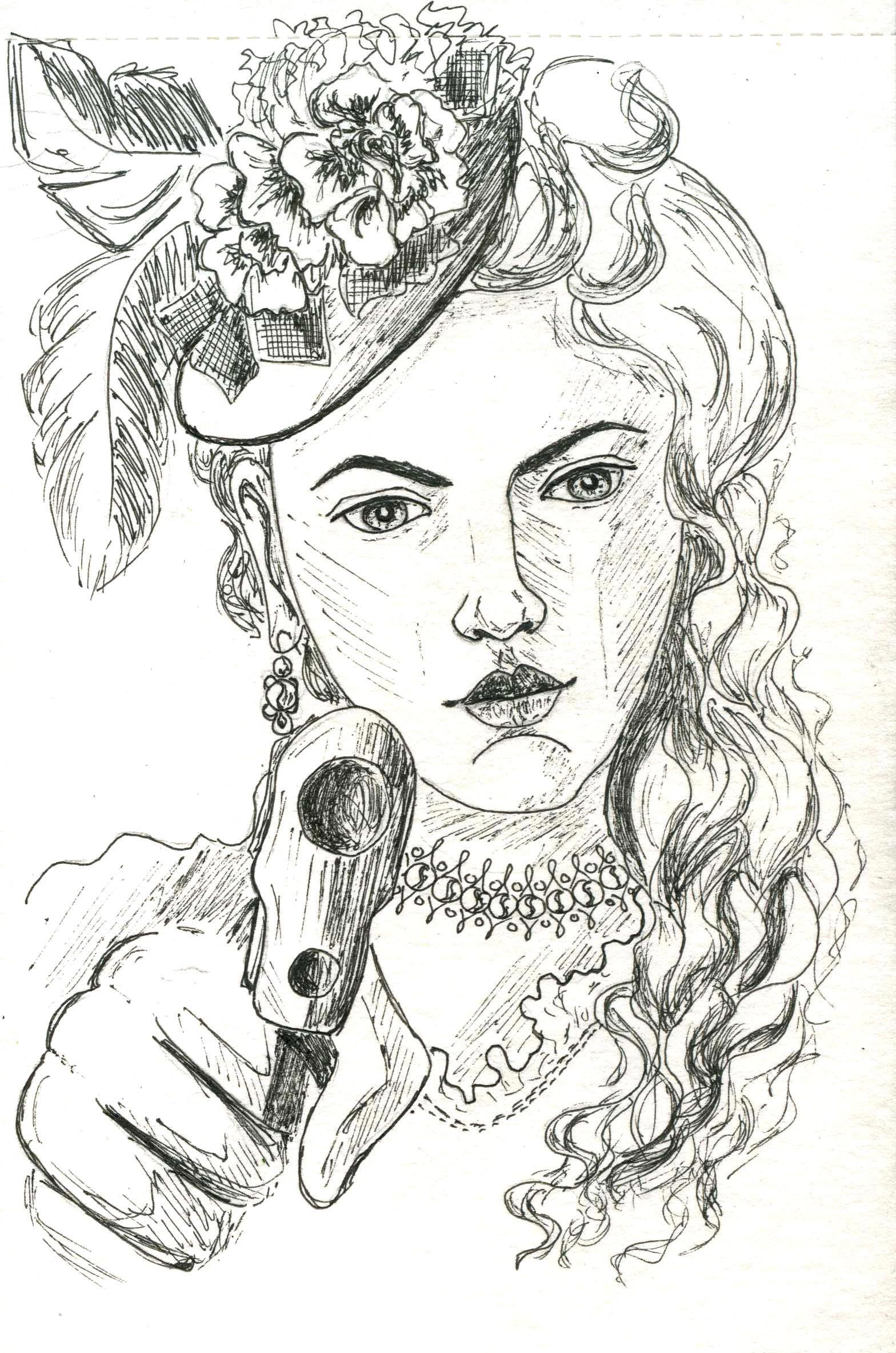Автор: Мария Камардина...Потому что читатели в ВК выбрали в качестве темы для рисунков по роману «Леди и вор» на эту неделю леди Аннабель с пистолетом и русалку в аквариуме. Увы, из-за загруженности справилась только наполовину, так что русалка будет на следующей неделе, зато сразу ощутила, что на курс по портретам записалась не зря