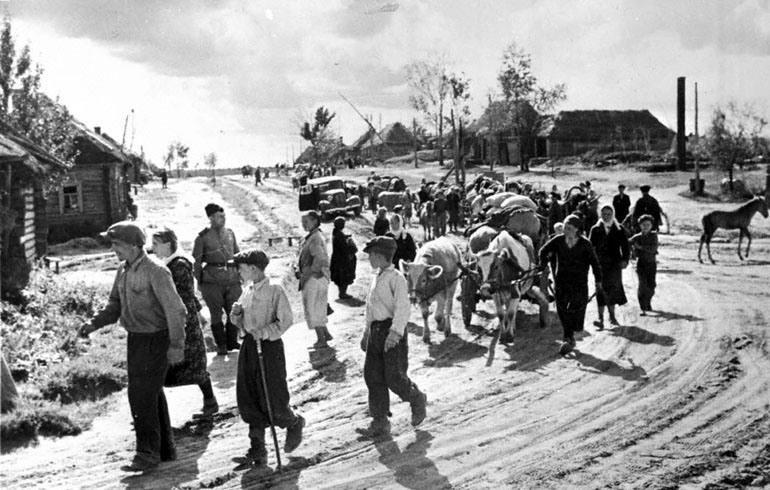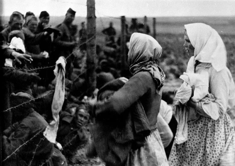Советские просят у пришедших женщин еду и воду в обмен на оставшиеся тряпки.