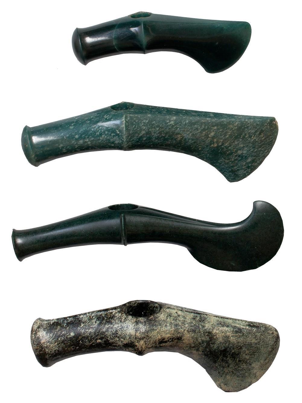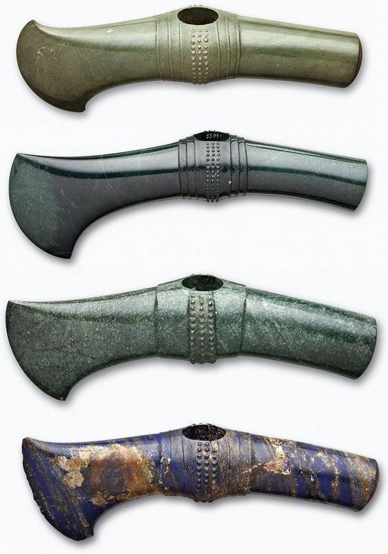 Кстати, специалисты отмечают, что этот самый нефрит, из которого сделаны топоры, хотя и относительно легко полируется с помощью кварцитового песка, но очень трудно откалывается. Так что топорики вполне можно было использовать по прямому назначению без особого риска разбить произведение искусства.