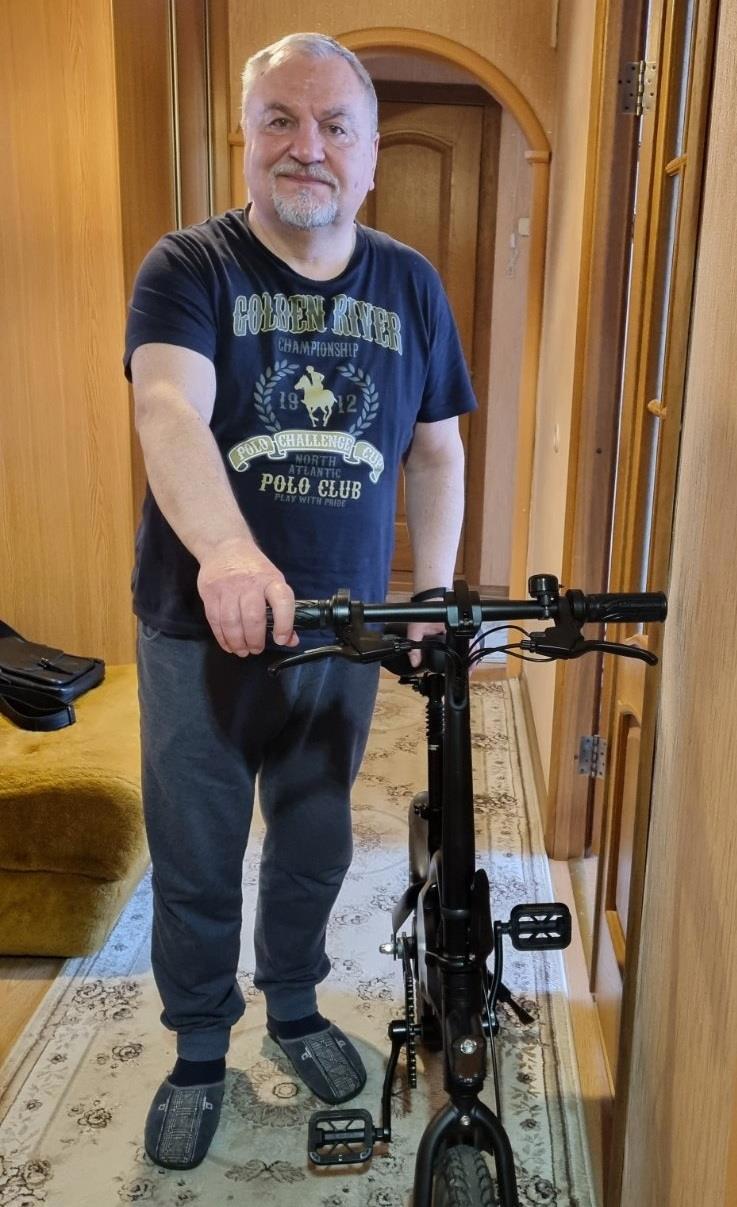 На фото я с велосипедом, внучка сняла на телефон. Снимок сбросила мне по Вайберу - продвинутые у нас дети. Внучке 11 лет. А теперь о велосипеде. Это электрический Kugoo V1, производства дружественных нам китайцев. Маленький (в лифт залезает без проблем), но довольно мощный. Носится, как конек-горбунок. Мои без малого 100 кг тянет как пушинку. На одном заряде проезжает минимум 20 км, а если еще педалями покрутить...
