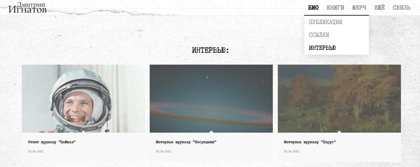 Автор: Дмитрий Алексеевич ИгнатовНа моём маленьком уютном сайте ignatov.website появился раздел с интервью. Я их уже умудрился надавать за свою не очень-то продолжительную писательскую карьеру. Теперь все они будут собраны в одном месте.
