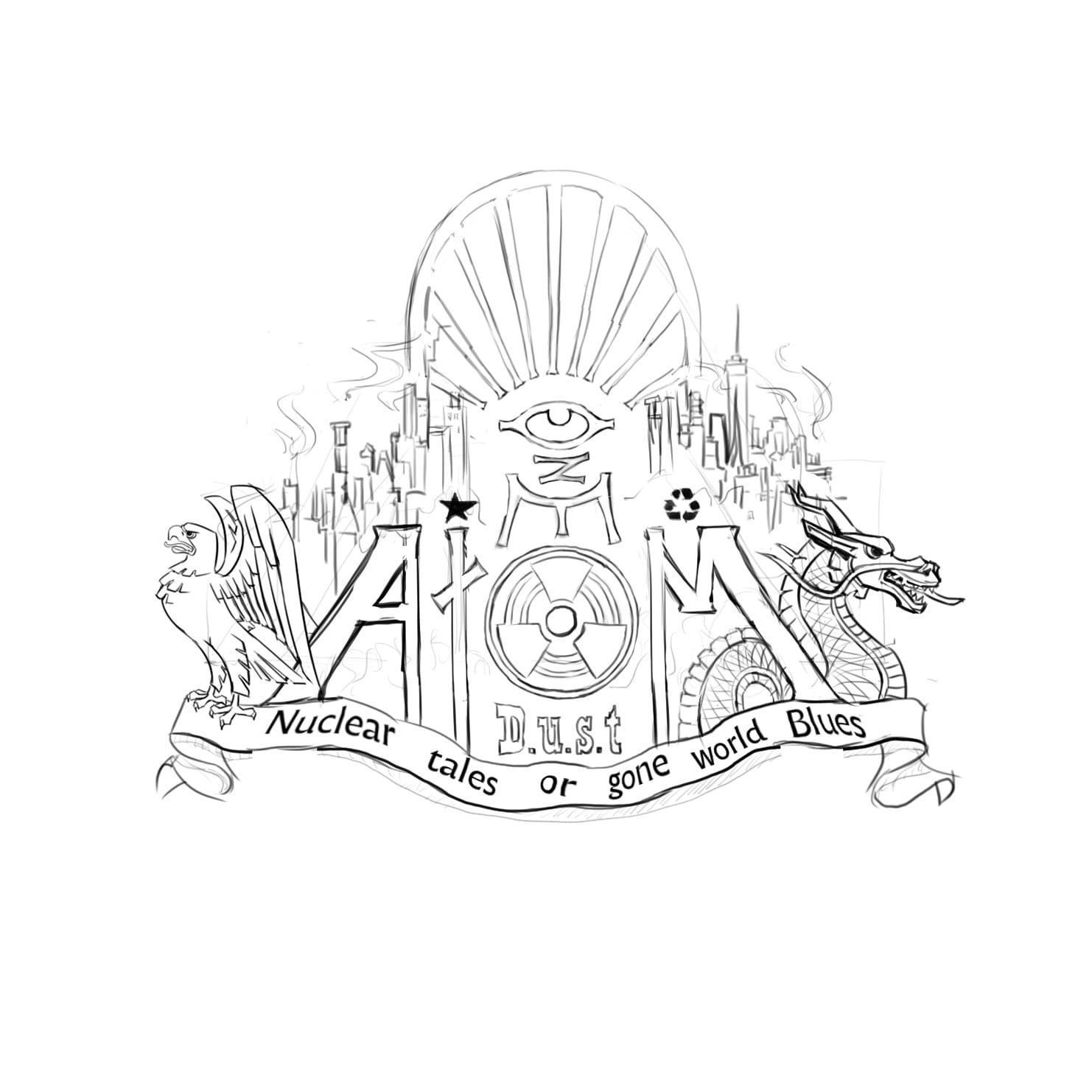 2) Нужно сместить все и убрать лишнее. К примеру ту же звездочку и знак переработки(в лоре они будут, как постапоклиптичные верования — ранние религии. Но на логотипе им места нет).