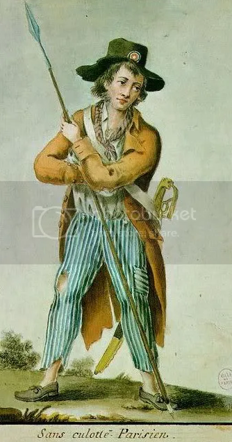 В годы якобинской диктатуры и Террора многие буржуа и бывшие "аристократы" носили одежду санкюлотов, чтобы особенно не выделяться из революционной толпы. (Примерно то же происходило после 1917 г., когда из обихода исчезли шляпы и т.д. Шляпу можно было потерять вместе с головой.)