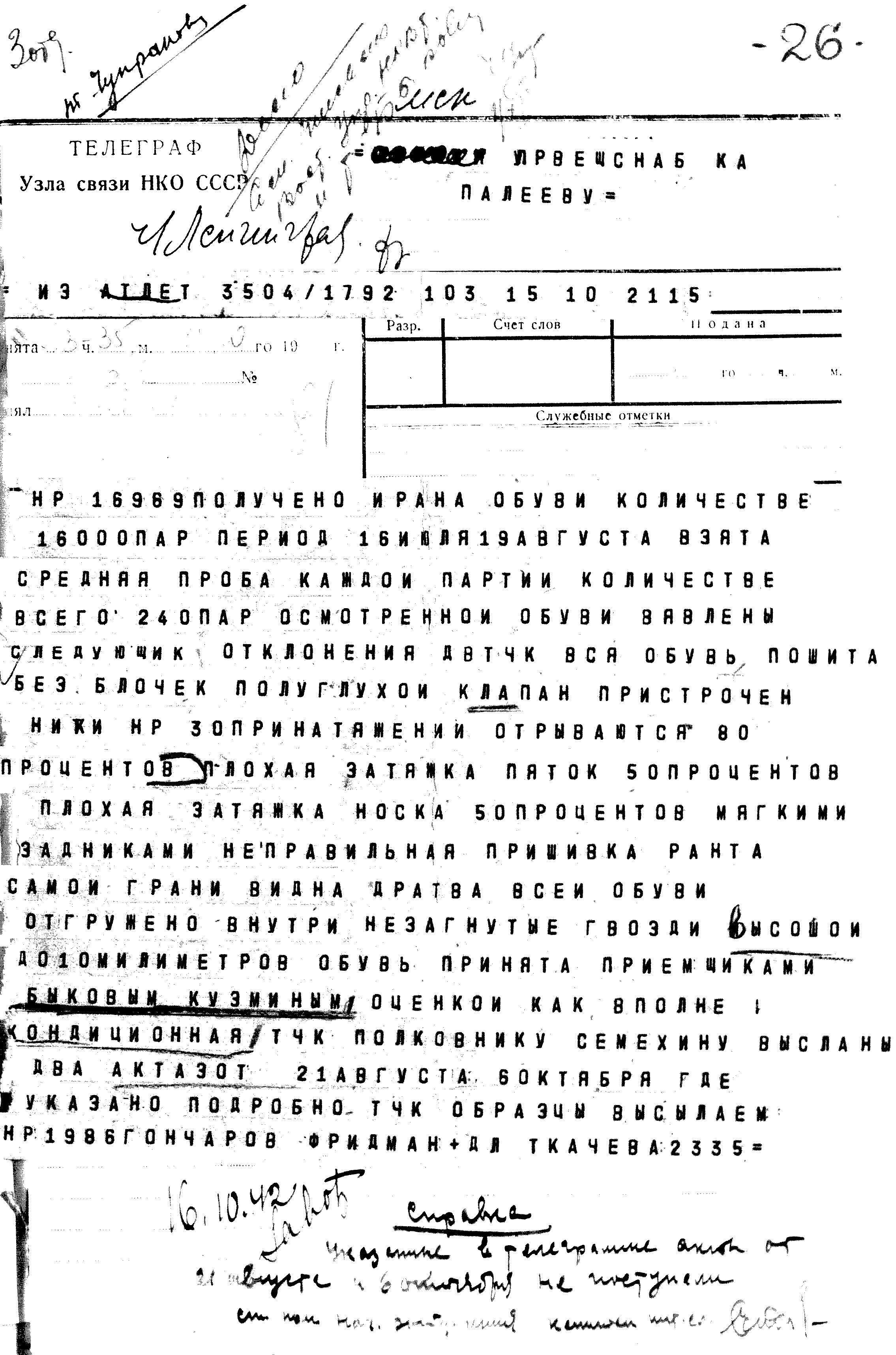 д/с: Доклад Военного представительства Закавказского района о дефектности иранской обуви![]()