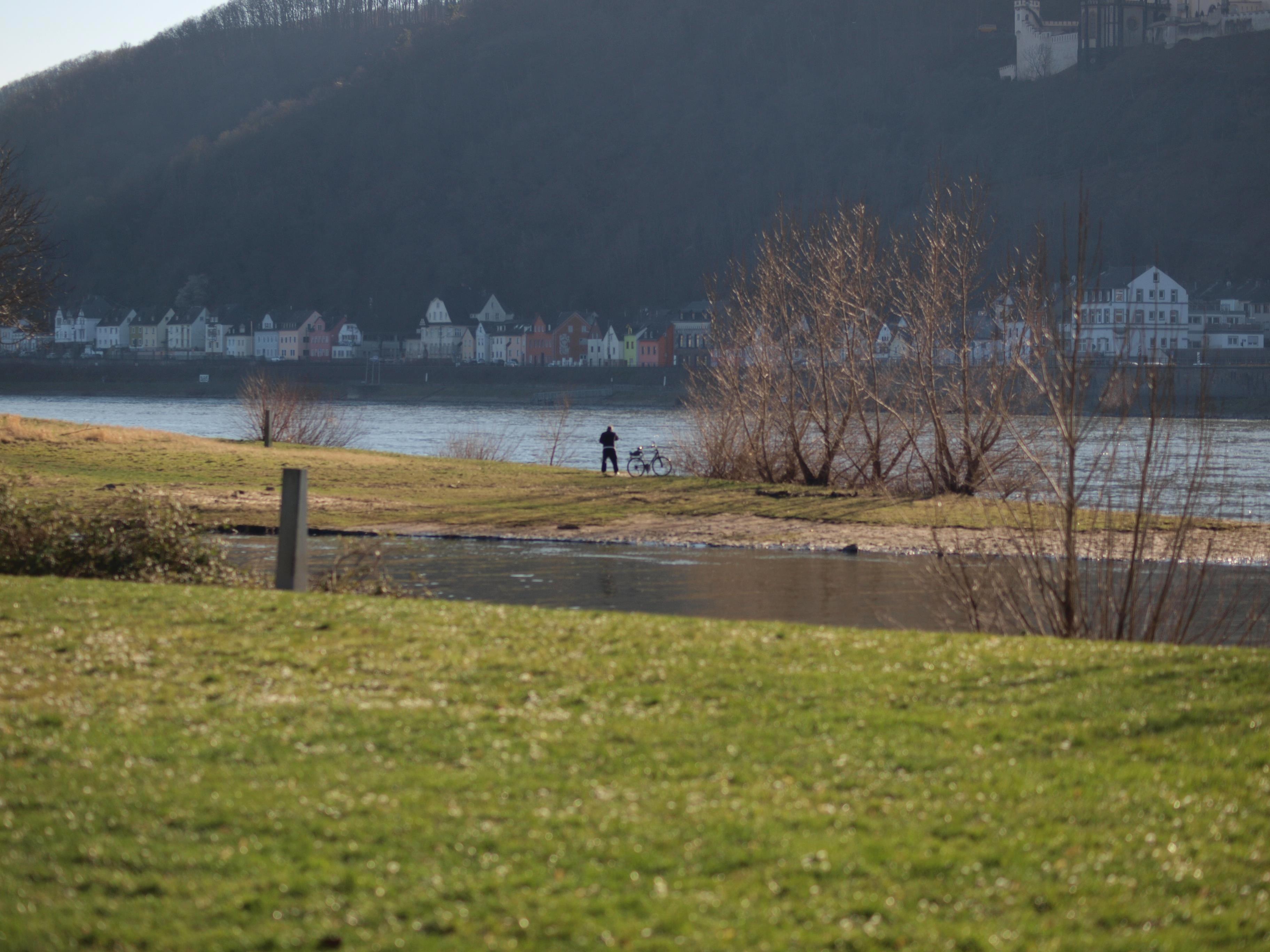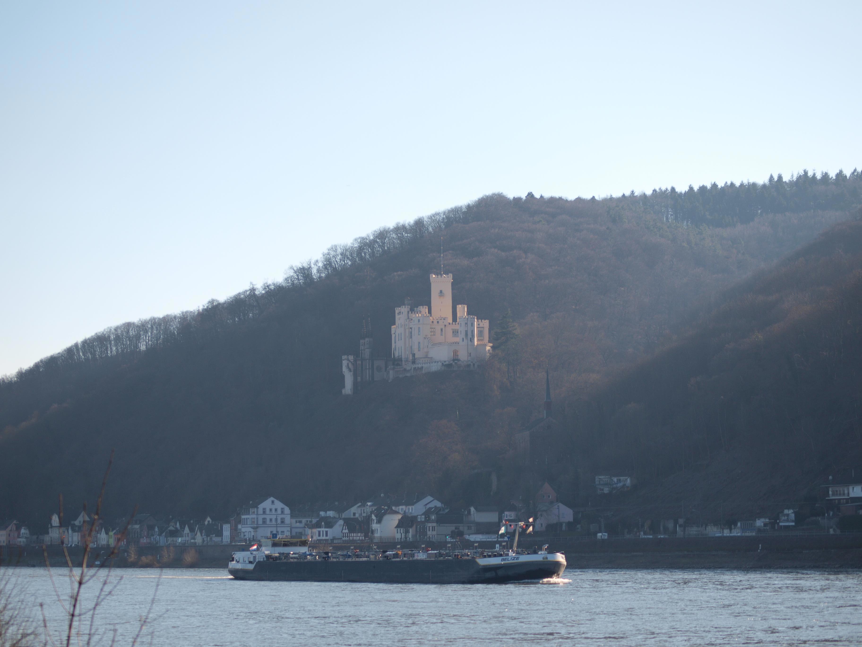 На противоположном берегу - замеок Штольценфельс. Крепость XIII века, заново отстроенная Ф. Вильгельмом IV в 1842 году в стиле неоготики, говорит гугл.
