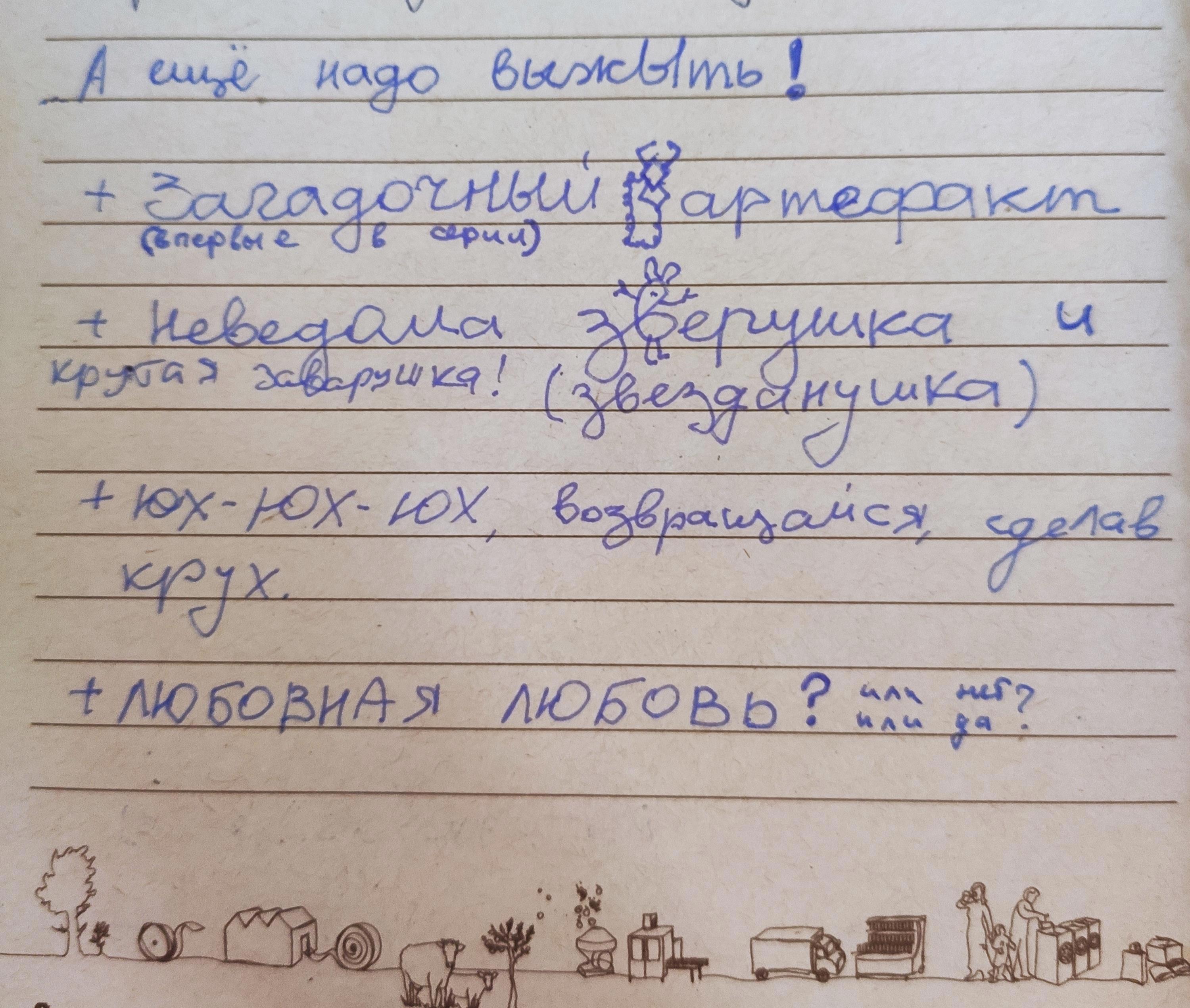 Потому что пока я важно вышагиваю по кухне и диктую мужу ключевые моменты сюжета - супруг делает собственные заметки на полях.