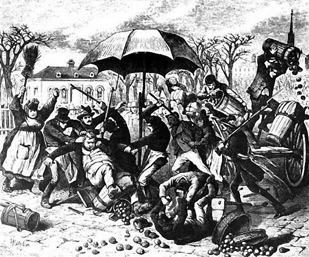 21 апреля 1847 года на Belle-Alliance-Platz в Берлине одна из торговок очень cильно увеличила ценник на свой картофель, а когда возмущённые покупательницы стали её стыдить, она в грубой форме ответила, что скоро им всем придётся радоваться, если крестьяне им хотя бы сено продадут. Такое хамство не осталось безнаказанным: в ответ торговке порезали несколько картофельных мешков и набрали картофеля не оплатив.