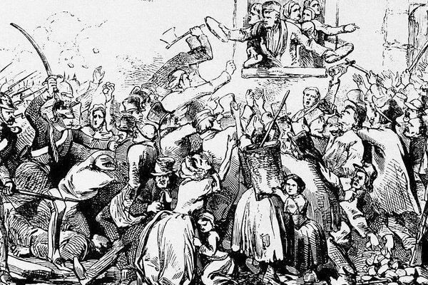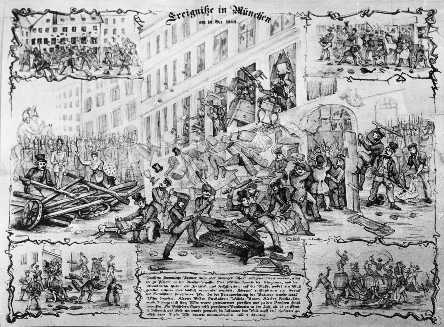 Эта литография изображает беспорядки в Мюнхене в 1848 году, но вполне может иллюстрировать и Франкфуртский пивной бунт.