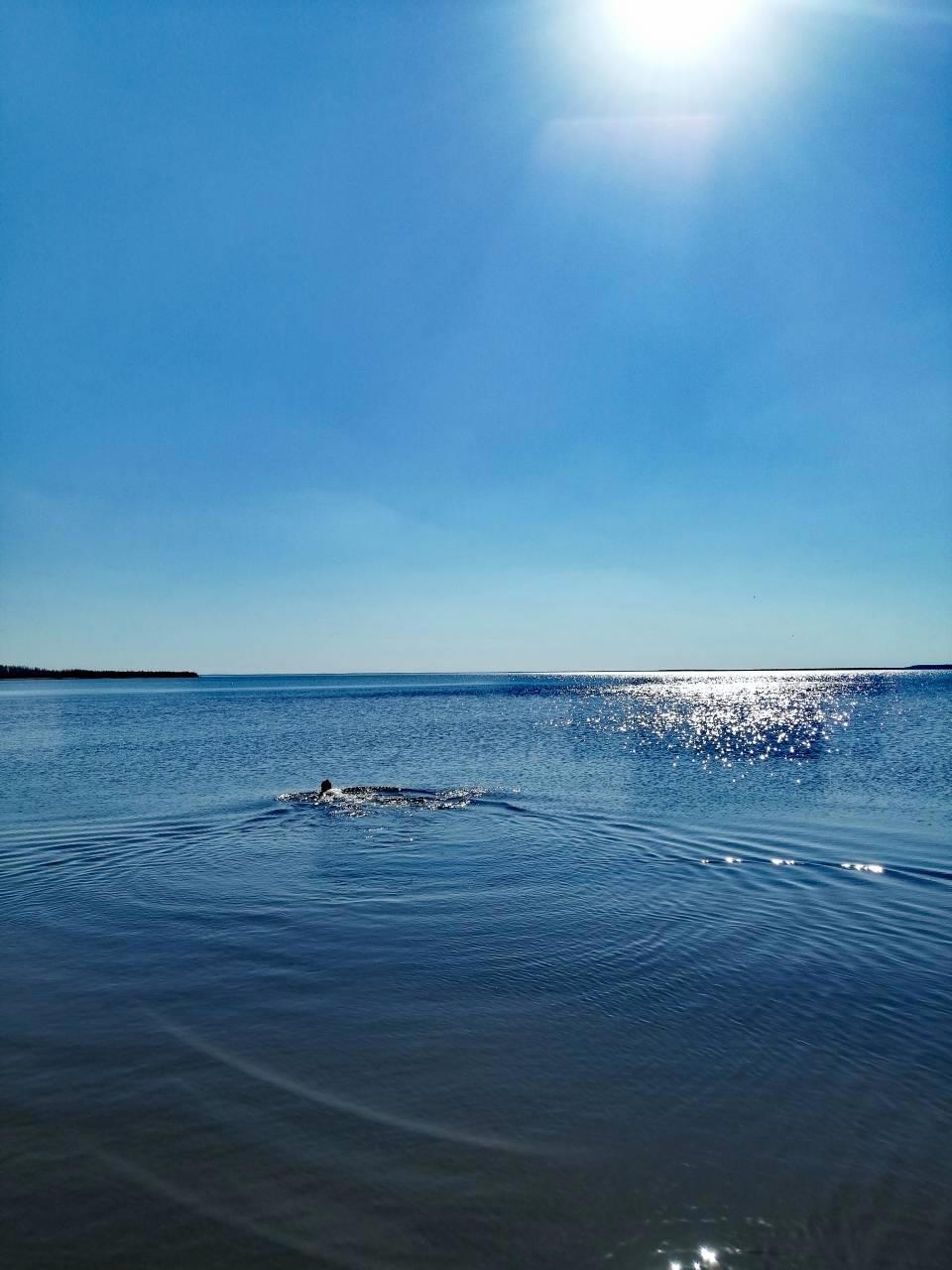 Водохранилище совсем очистилось от остатков льда. Муж открыл купальный сезон.