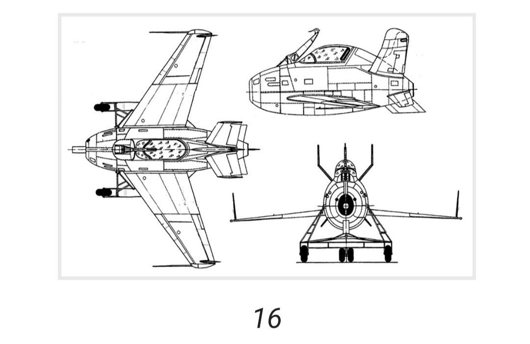 Прошло совсем немного времени и на свет появились странного вида реактивные монопланы, похожие по форме на пузатый бочонок со стреловидным крылом размахом всего 4,6 м и длиной 4,53 м.